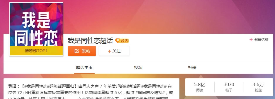 As of Tuesday, #IAmGay, one of the most frequent used hashtags, had gained over 58 million of views on Weibo.