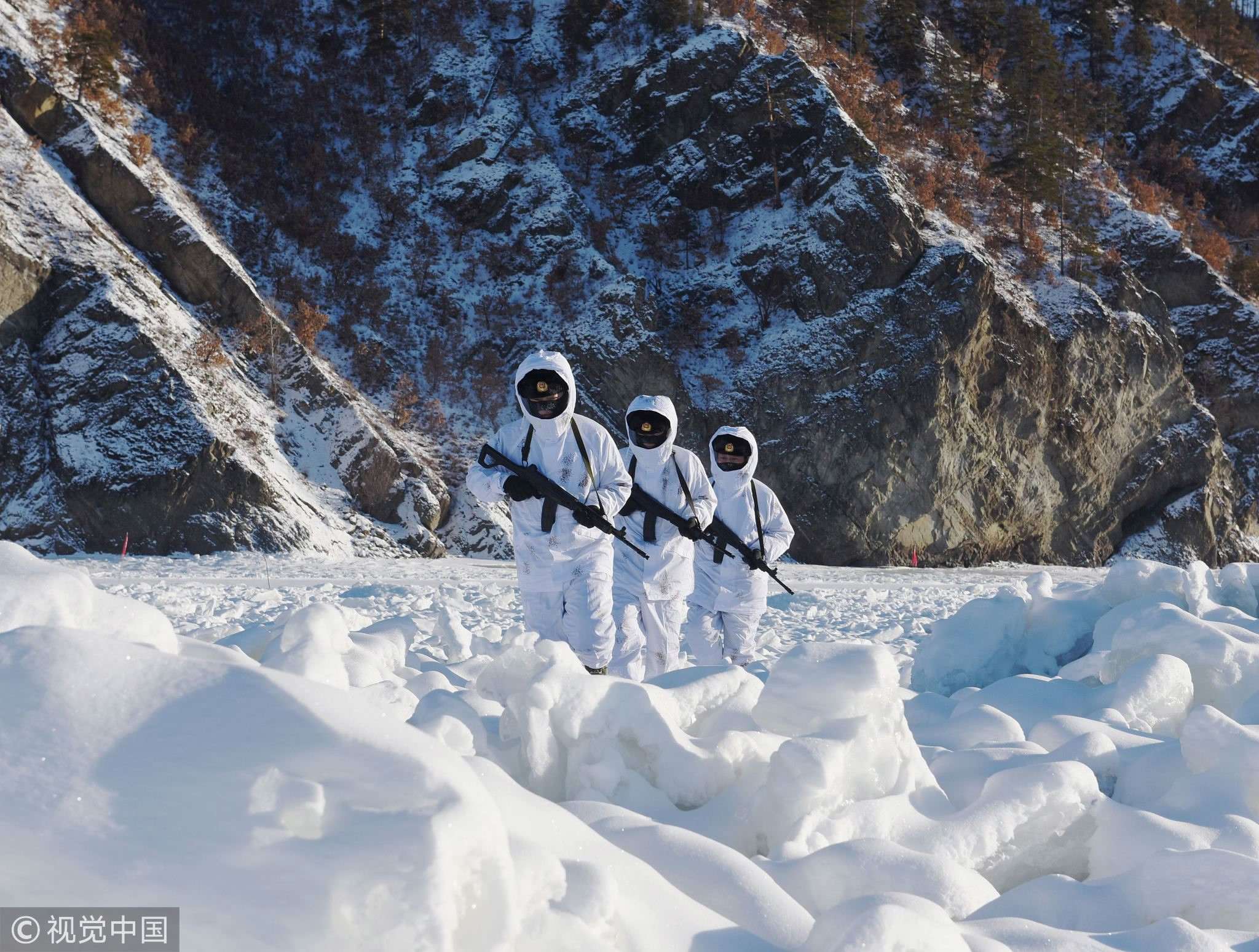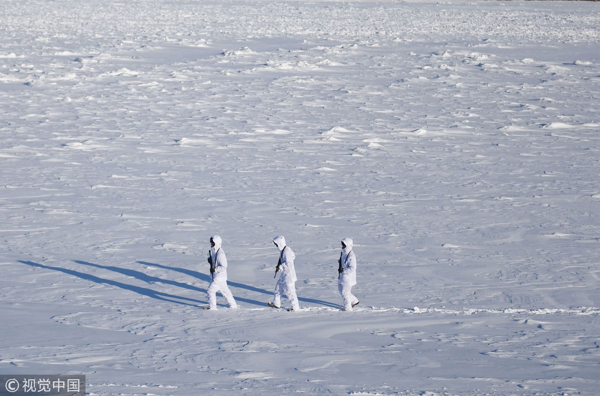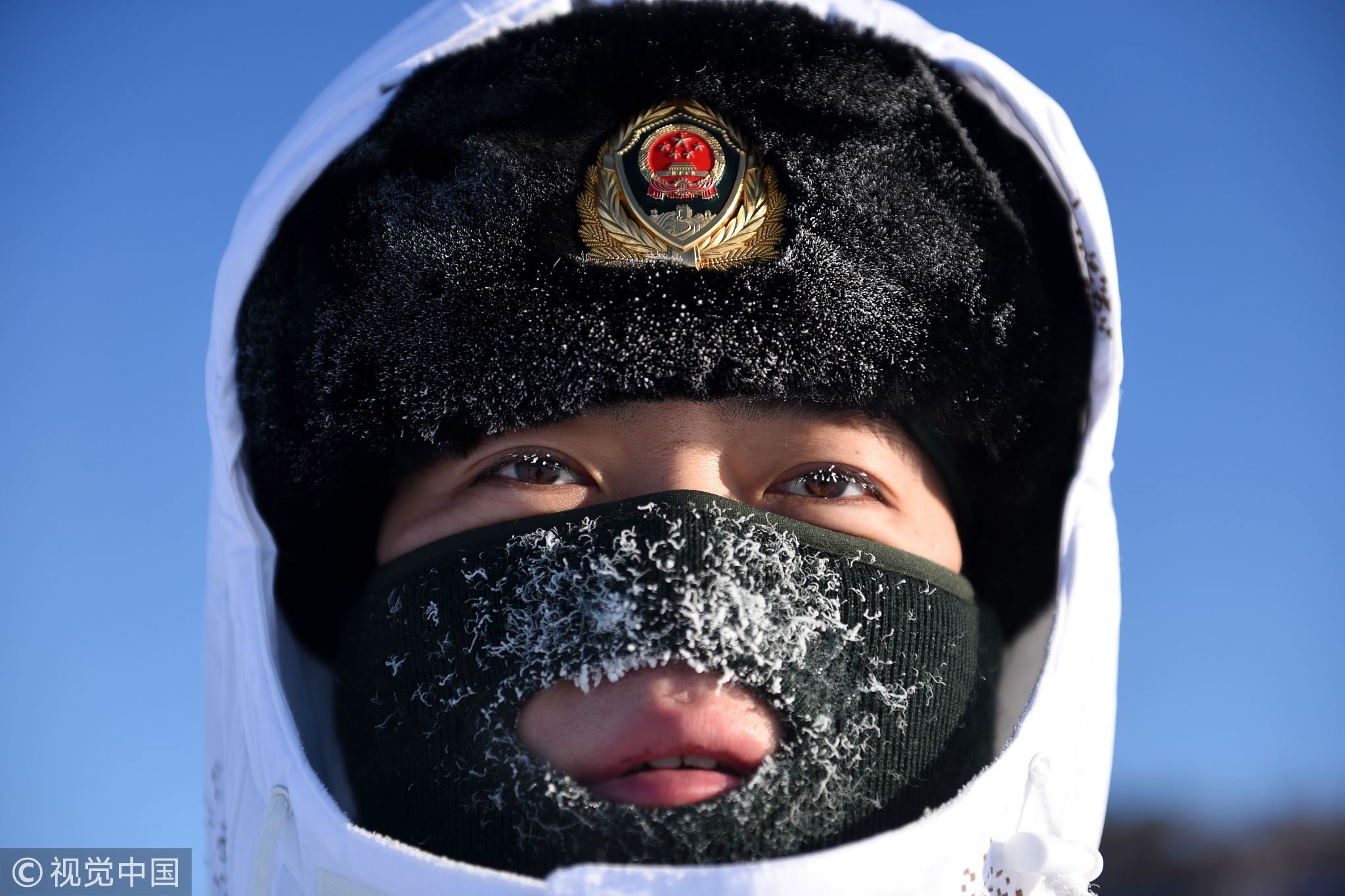 Border guards patrol in Tahe County, northeast China’s Heilongjiang Province, at minus 33 degree Celsius on January 28, 2018. /CFP Photo