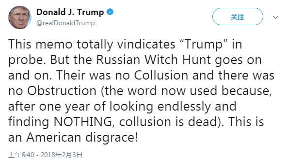 After the release of the Republican memo, Trump said the contents "totally vindicated" him.