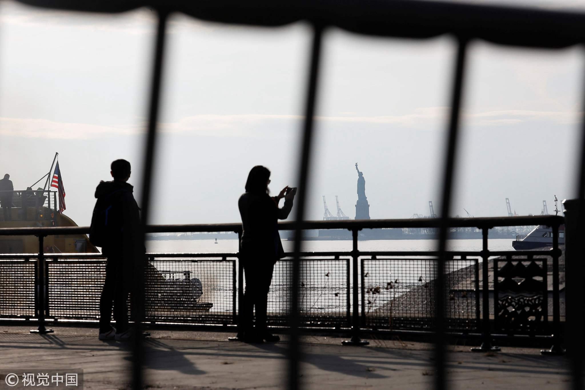 The Statue of Liberty is seen through fencing from a ferry dock following a US government shutdown in Manhattan, New York. /VCG Photo