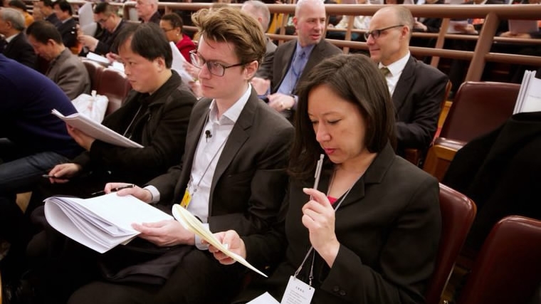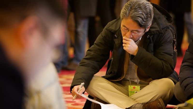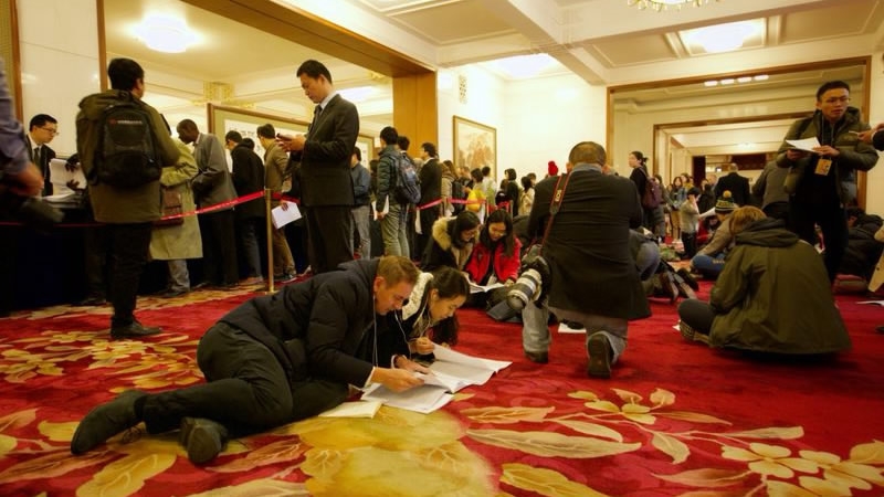 The reports – published in multiple languages – were collected, and a long-observed ritual followed. Dozens of reporters strewn across the floor, urgently highlighting key passages and WeChat-ing them back to their offices – all in the hour before Premier Li took to the stage at the opening of the first session of the 13th National People’s Congress (NPC).