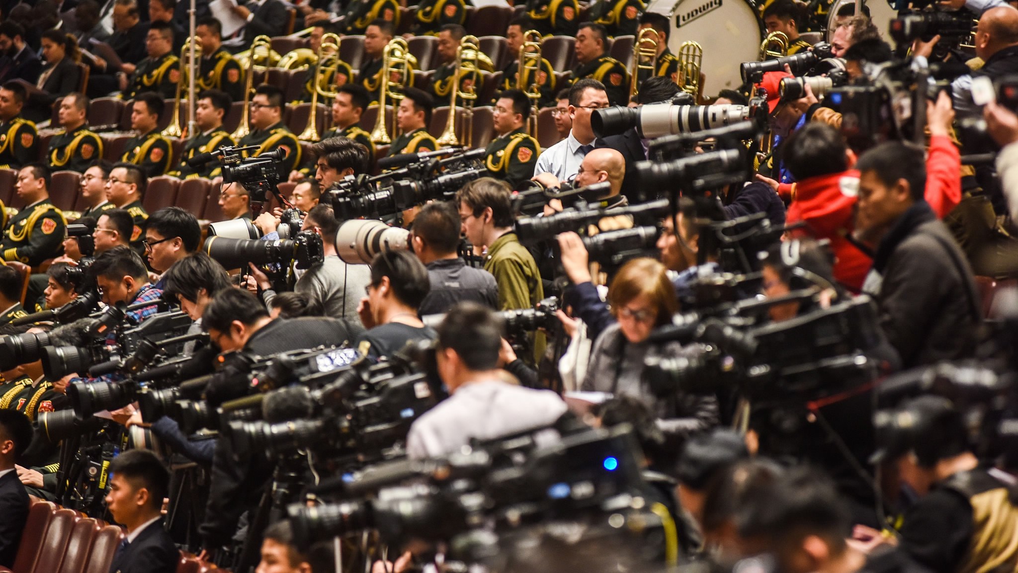 Cameras at the opening of the first session of the 13th National People's Congress at the Great Hall of the People, Beijing, March 5, 2018. /VCG Photo