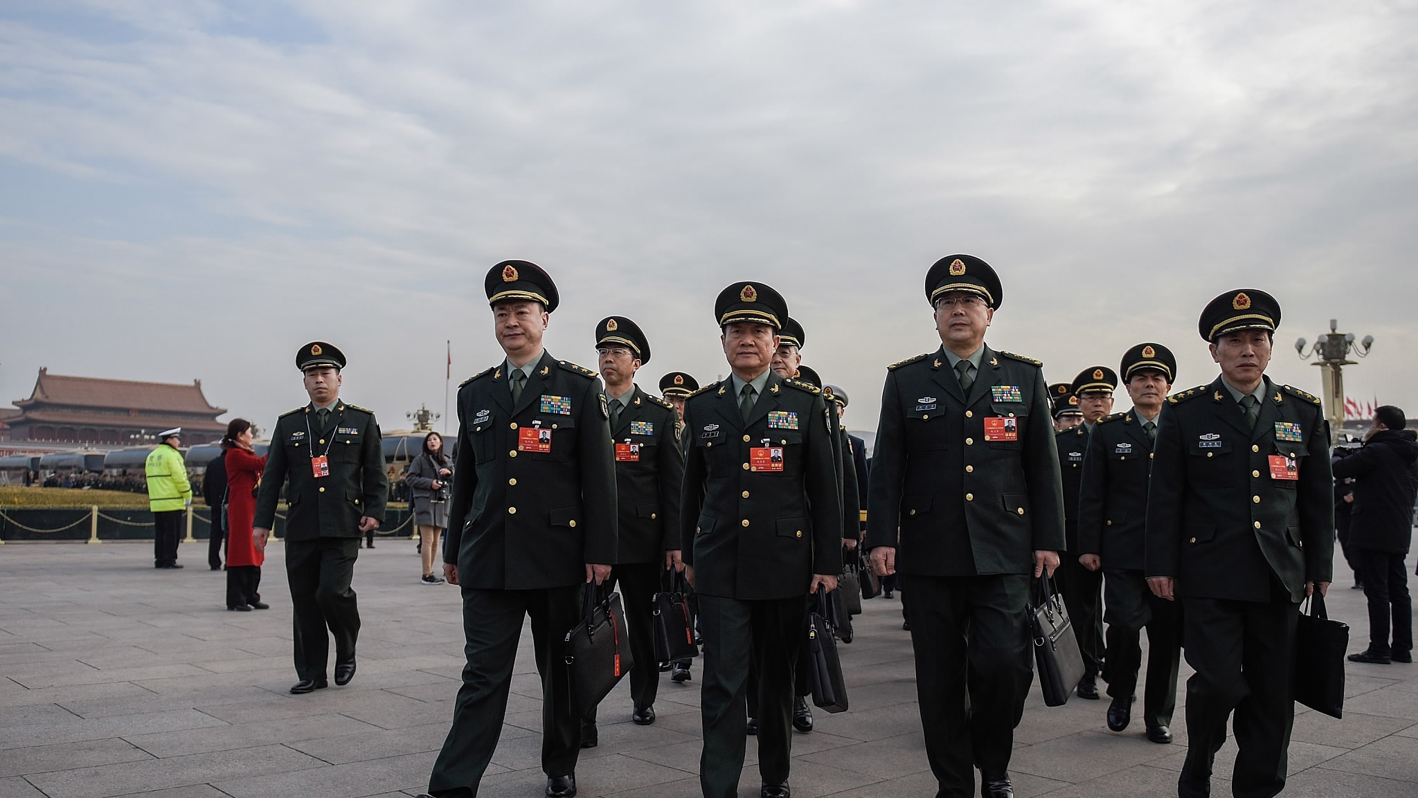 Deputies to the 13th National People's Congress walk towards the Great Hall of the People, Beijing, March 5, 2018. /VCG Photo