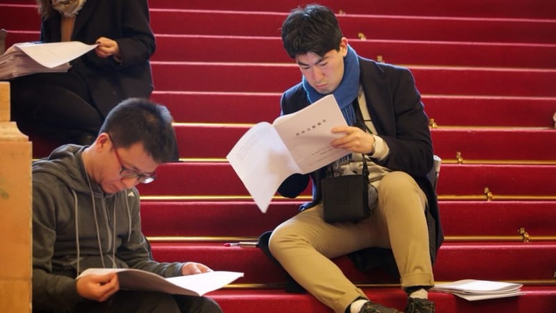 A journalist studies the 2018 government work report in the Great Hall of the People, Beijing, March 5, 2018. /CGTN Photo