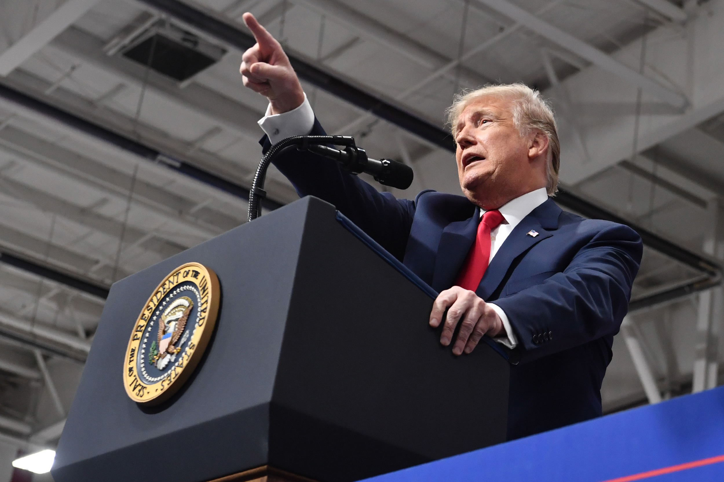 US President Donald Trump delivers remarks at the Make America Great Again Rally on March 10, 2018. /VCG Photo
