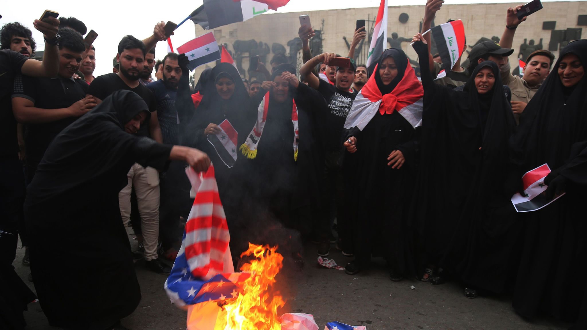 Thousands of Iraqis protested in several cities on Sunday against US-led strikes on Syria, answering a call by influential Shiite cleric Moqtada Sadr. Protestors set US flags on fire as they chanted against the military action by the US, France and Britain.