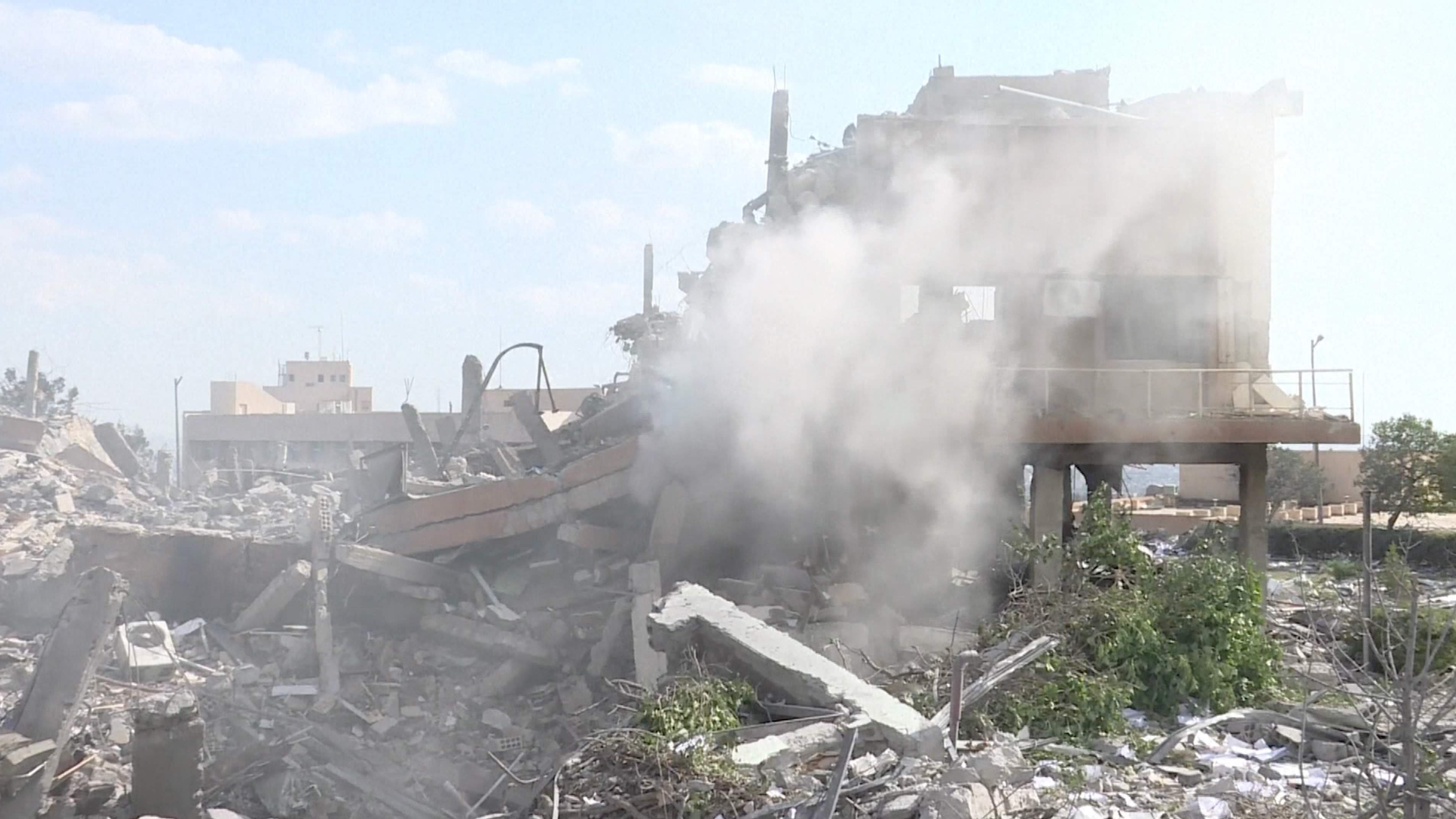 Syrian state television showed images of a destroyed research center in Barzeh, north of Damascus, they say was hit by strikes on early Saturday.