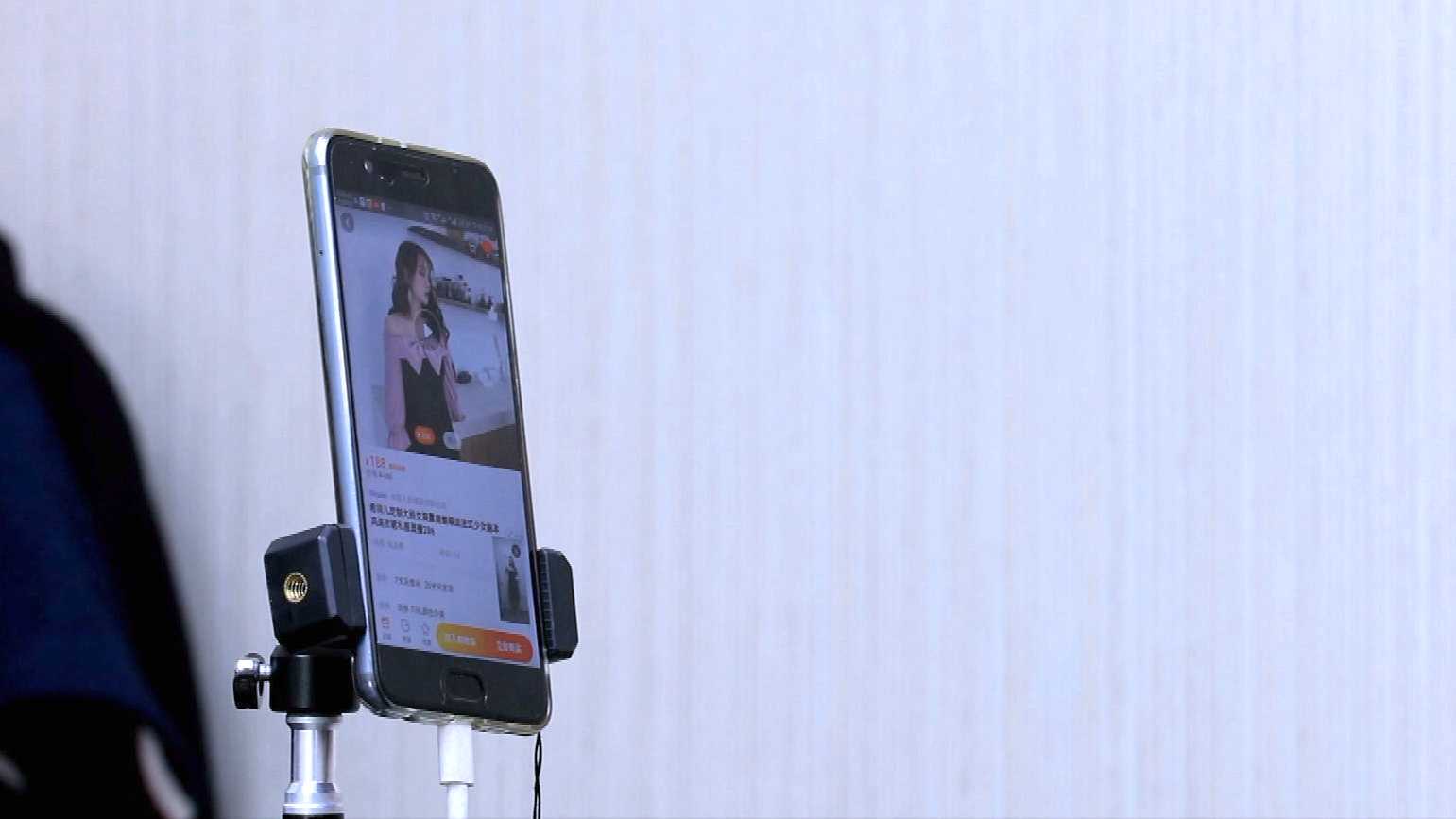 Man Li's video for trying clothes is seen on her smartphone. /CGTN Photo