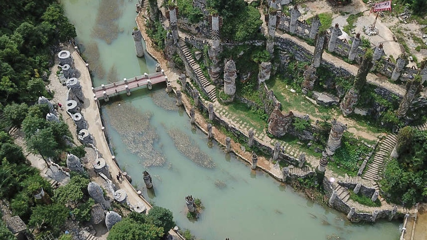 Aerial photo taken on July 1, 2018, shows a general view of Song Peilun's stone castle "Yelang" in Leping village of Huaxi district in Guiyang, southwest China's Guizhou Province. /Xinhua Photo
