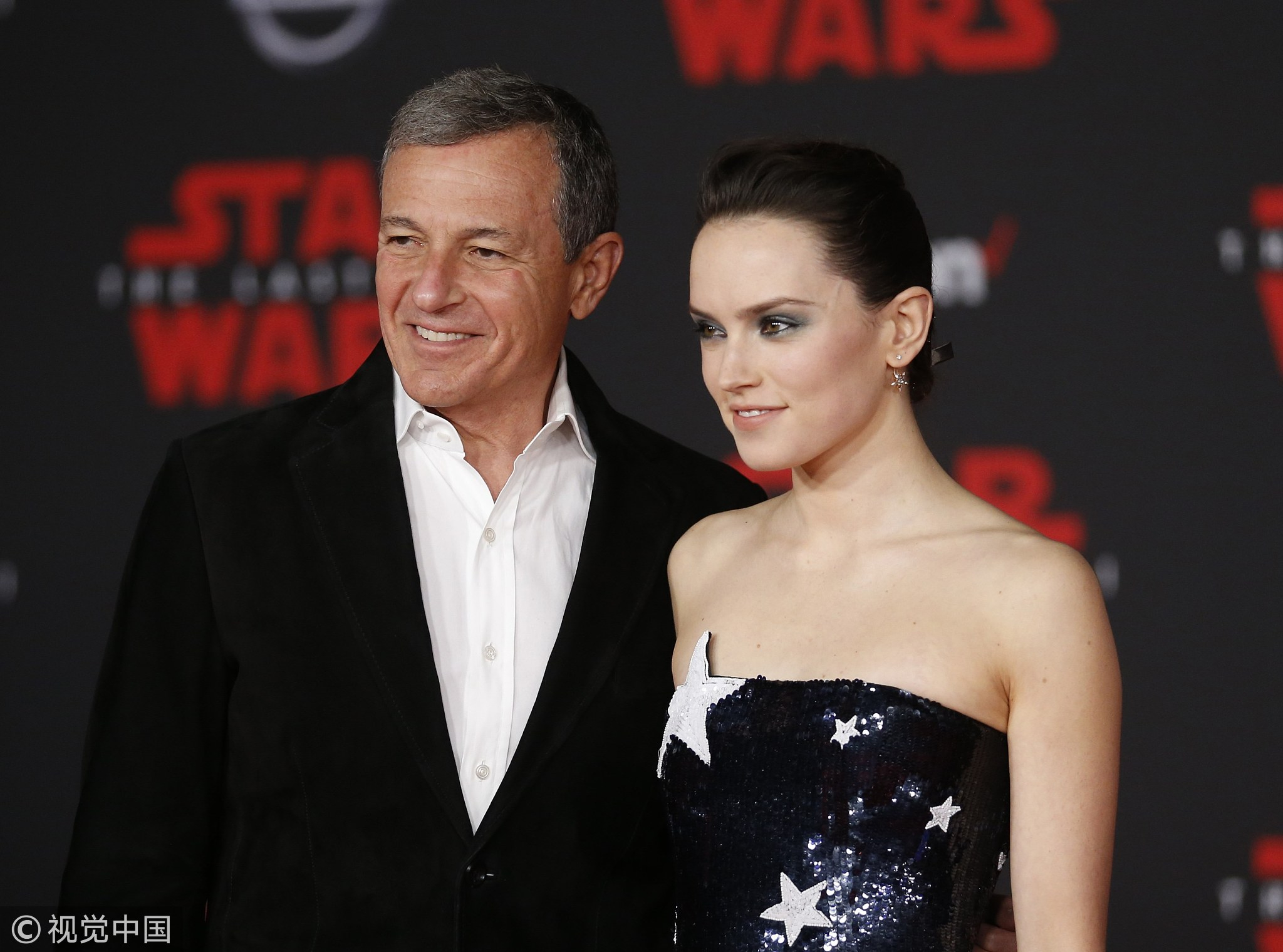 Chairman and CEO of The Walt Disney Company Bob Iger(L) and actress Daisy Ridley arrive at the world premiere of "Star Wars: The Last Jedi" in Los Angeles, California, US, Dec. 9, 2017. /VCG Photo