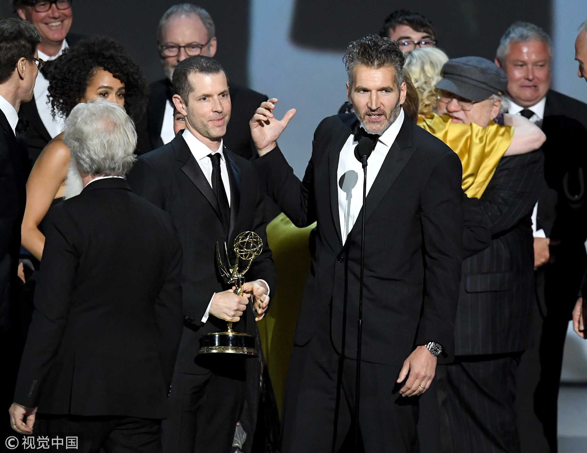 D. B. Weiss (L) and David Benioff accept the Outstanding Drama Series award for 'Game of Thrones ' onstage during the 70th Emmy Awards at Microsoft Theater on Sept. 17, 2018 in Los Angeles, California. /VCG Photo