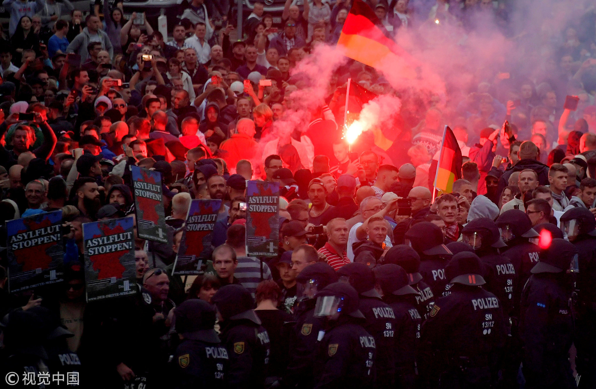 Right-wingers protest in Chemnitz, Germany after a German man was stabbed, August 27, 2018. /VCG Photo