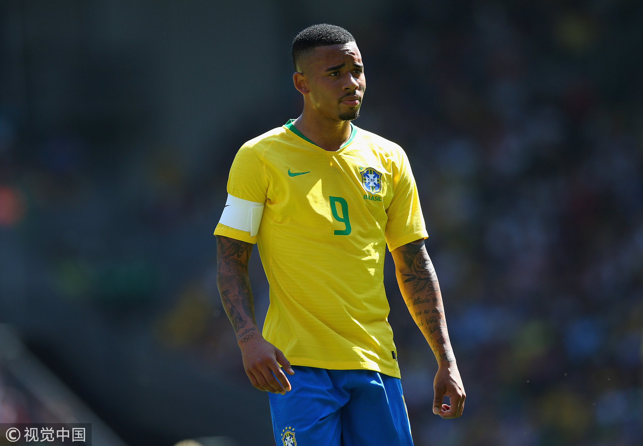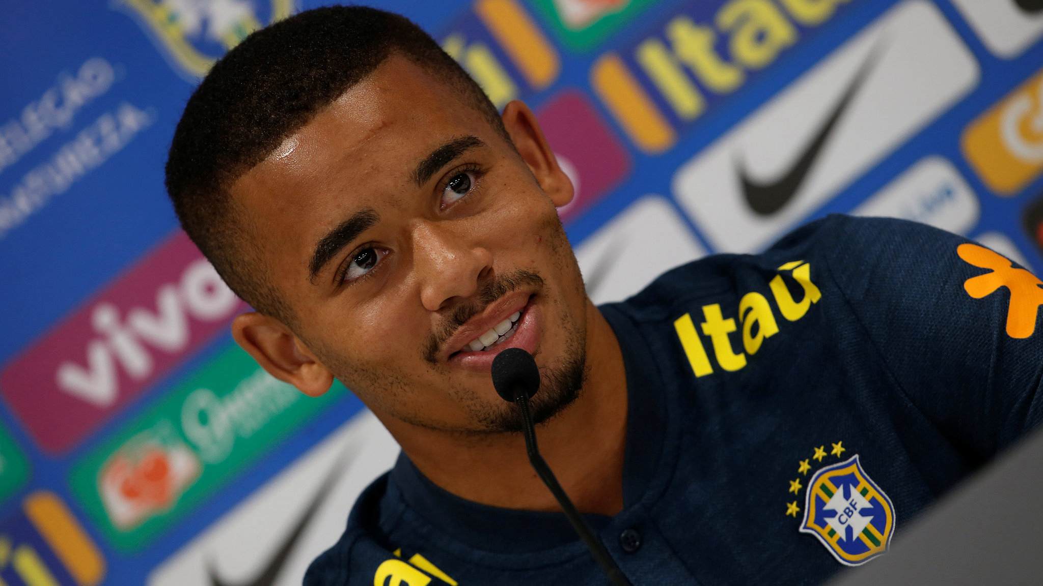 Gabriel Jesus of Brazil looks on during the International friendly match between of Croatia and Brazil at Anfield on June 3, 2018 in Liverpool, England. /VCG Photo
