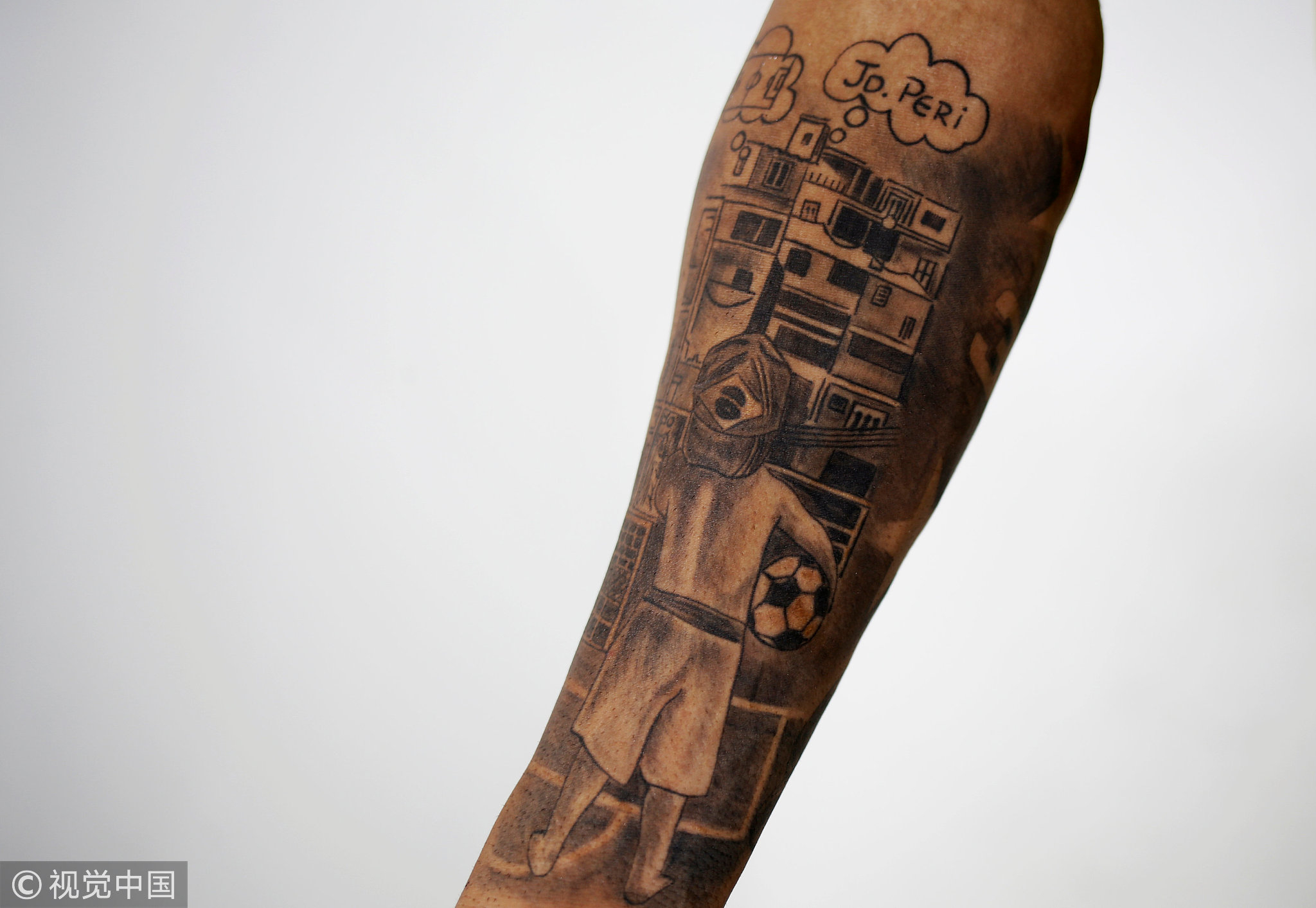 Palmeiras' Gabriel Jesus, 19, shows his tattoo designed in reference to the neighborhood of Jardim Peri in Sao Paulo where he was born, during an interview with Reuters in Sao Paulo, Brazil, November 24, 2016. /VCG Photo