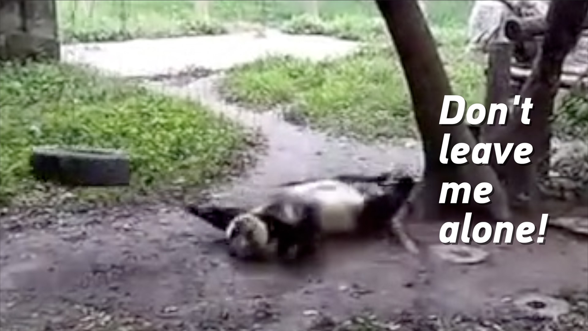 A panda in Chongqing Zoo managed to get lost while playing with a tire swing. Take a look!