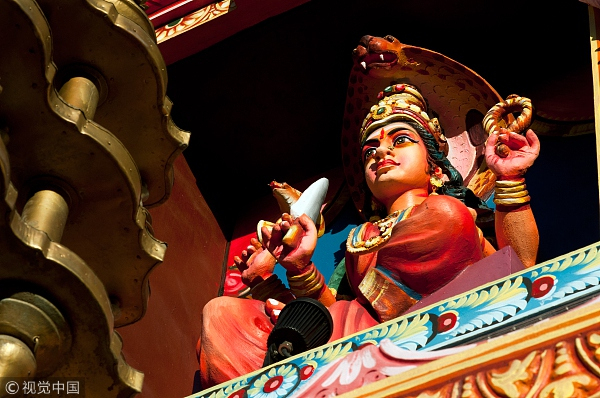 Picture of a Hindu temple near the harbor, Port Louis, Mauritius. /VCG Photo