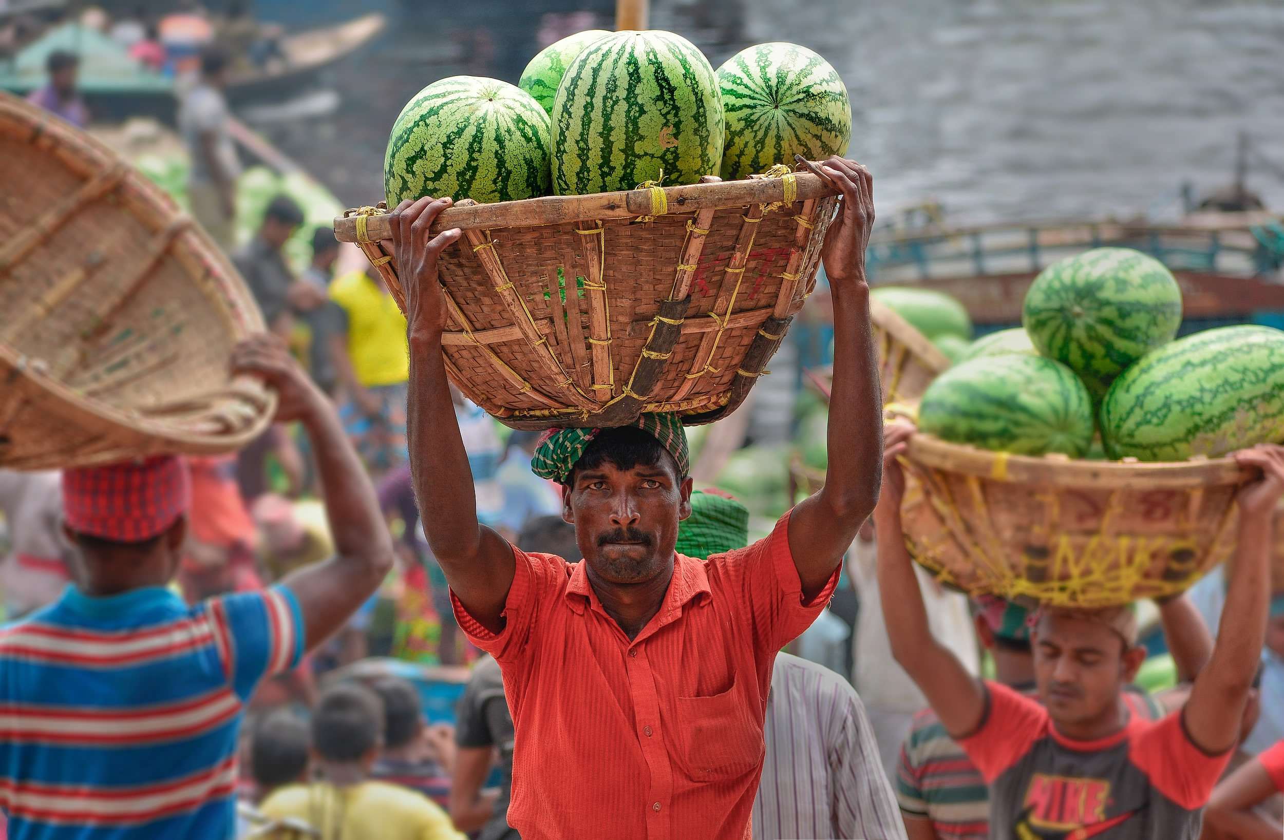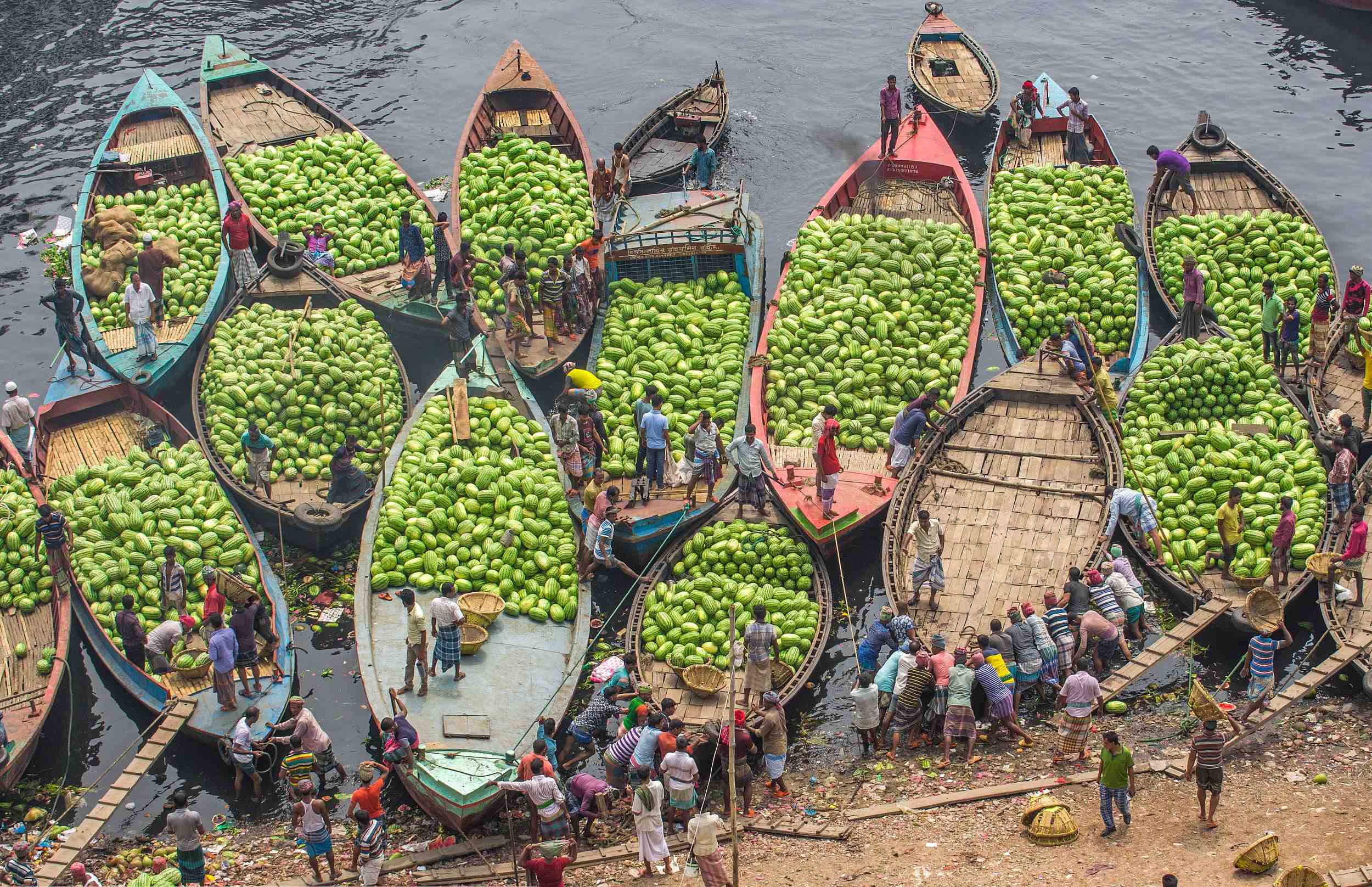 Photographer Abdul Momin travelled to the bazaar to capture the amazing sight, which goes on from sunrise to sunset. He said: "These watermelons are largely cultivated in the southern parts of Bangladesh and later brought to Dhaka for sale.” /VCG Photo