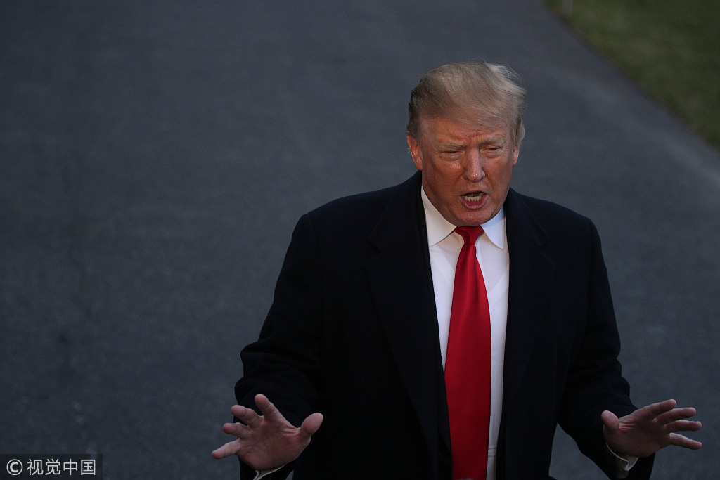 U.S. President Donald Trump speaks to the media as he returns to the White House in Washington, DC, U.S., March 24, 2019. /VCG Photo