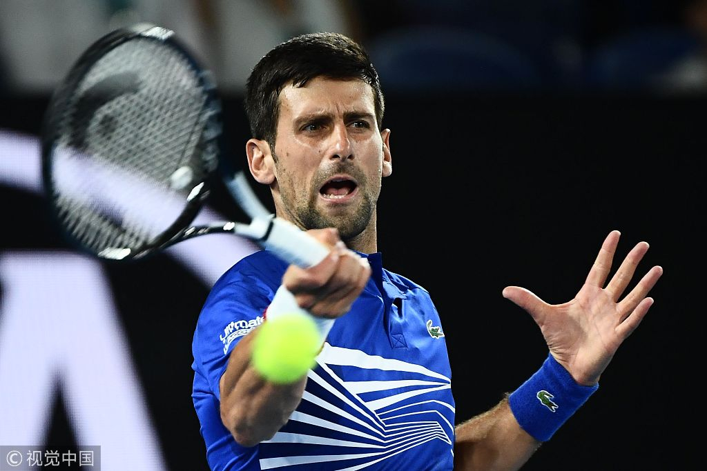Novak Djokovic hits a return against Daniil Medvedev (not pictured) during the men's singles match at Australian Open, January 21, 2019. /VCG Photo