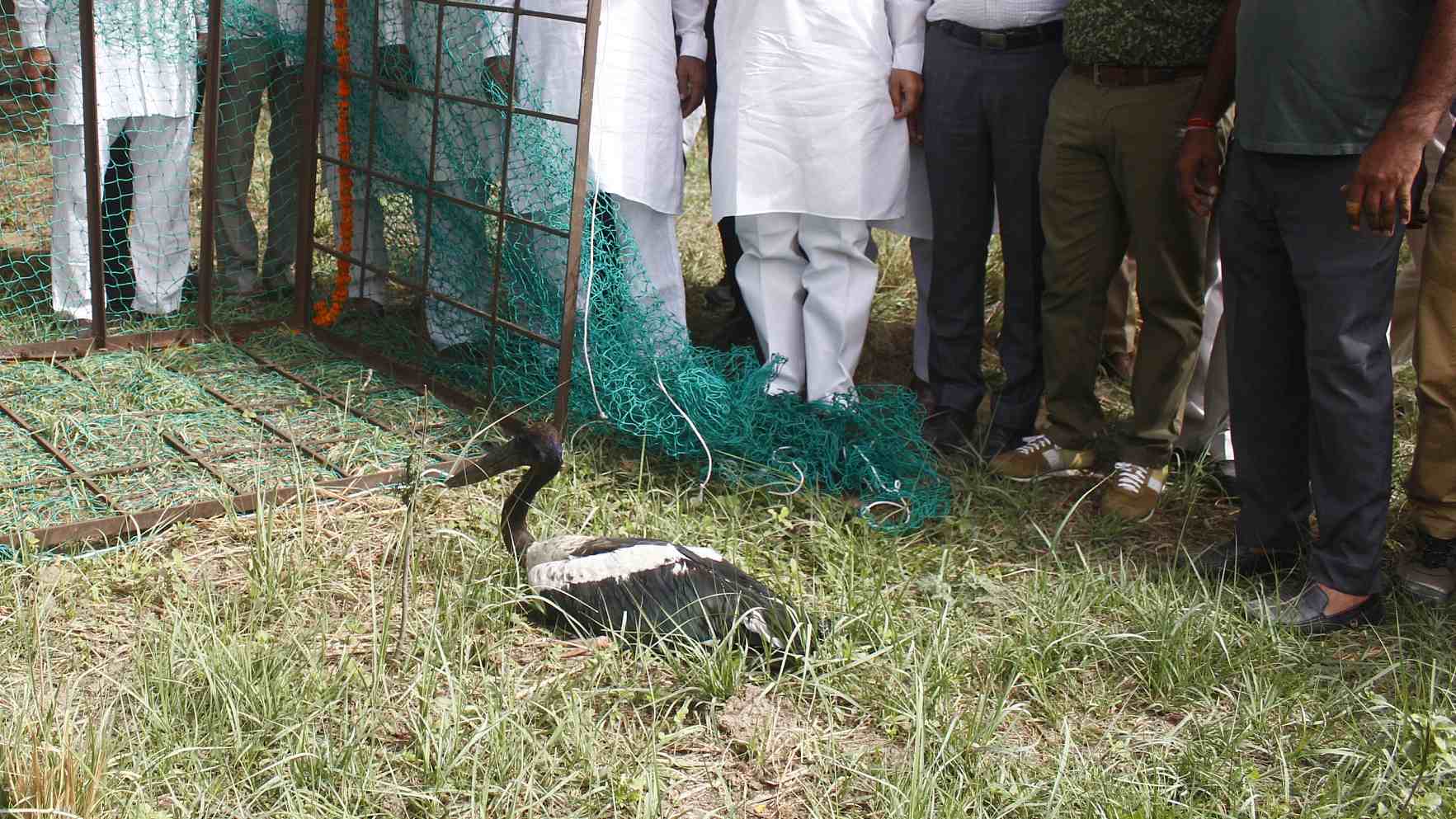 Seven days after a bird enthusiast named Manoj Nair snapped the photo in a wetland in Gurgaon, a suburb of India’s capital, the stork was finally captured and then taken to a sanctuary for treatment on June 13. Even though it was dehydrated, it still was in a good condition since it was previously able to nibble on small fish. /VCG Photo
