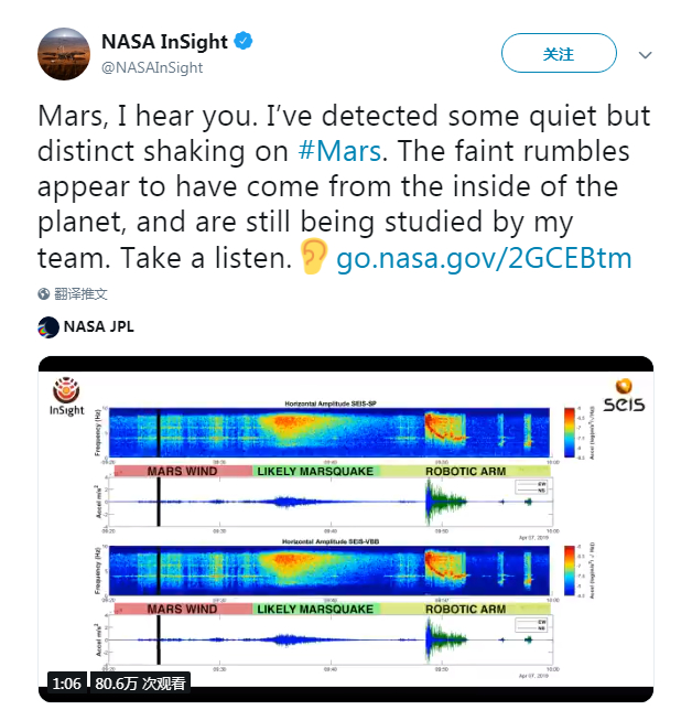 "Mars, I hear you. I've detected some quiet but distinct shaking on #Mars," tweeted NASA InSight on Tuesday.