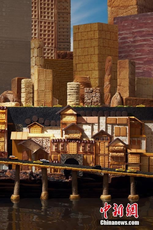 Crackers made into an old town district, red peppers made into a river bridge, radishes made into metro cars… A group of creative young artists in southwest China’s Chongqing Municipality have used raw food ingredients to recreate landmarks from their home town. /Chinanews Photo
