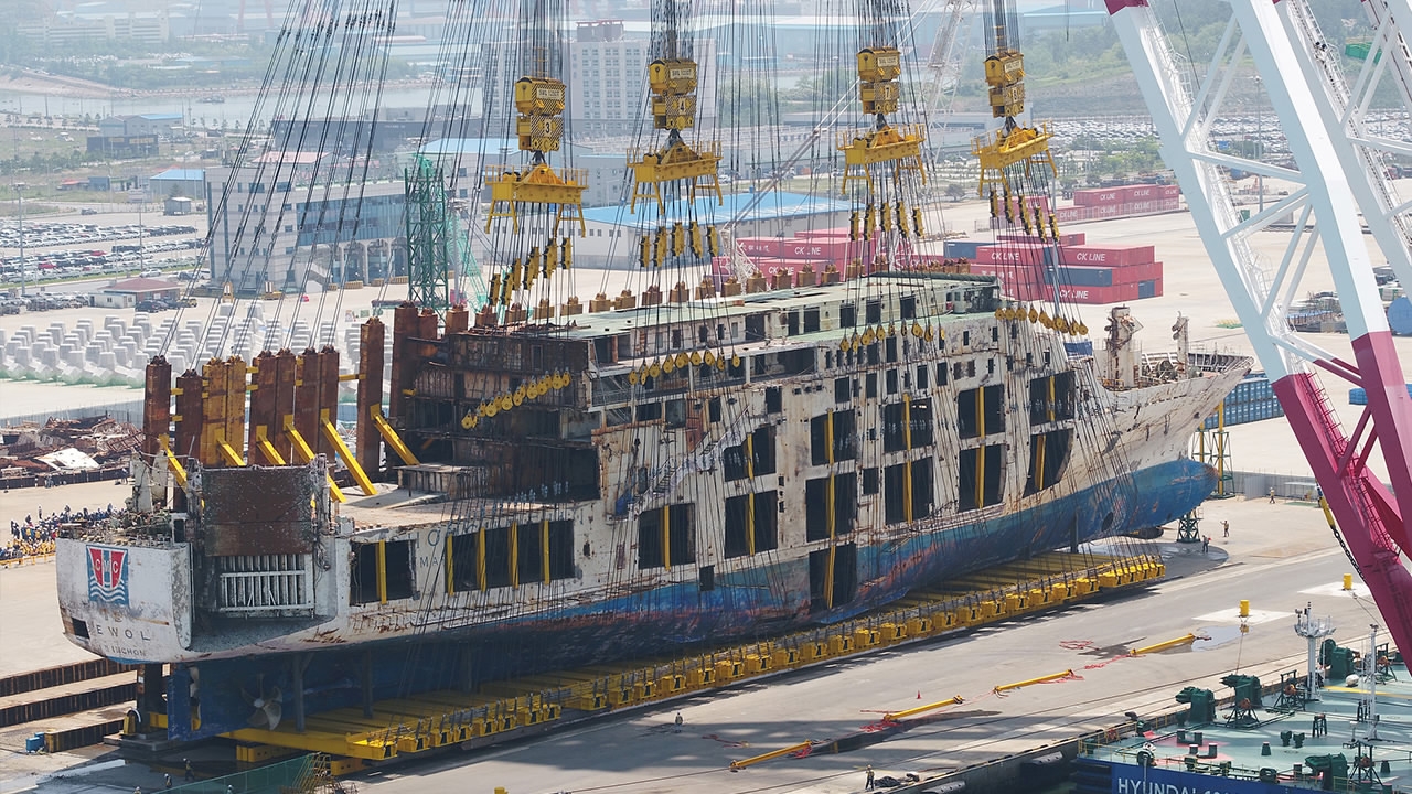 South Korea has placed the wrecked hull of the 6,800-ton Sewol ferry which sank four years ago, in an upright position.