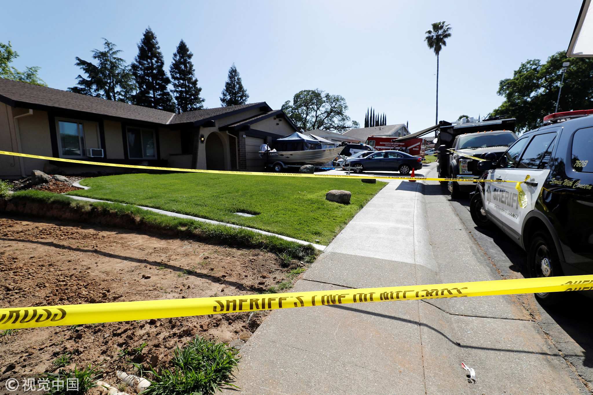 Crime scene tape surrounds the house belonging to Joseph James DeAngelo, who was arrested for the East Area Rapist/Original Night Stalker/Golden State Killer case in Citrus Heights, California, April 25, 2018. /VCG Photo