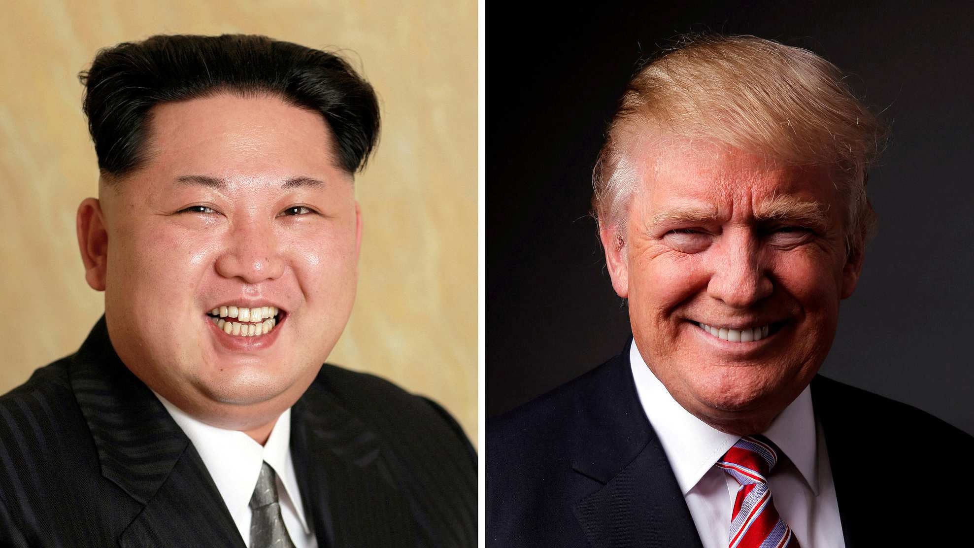 A combination photo shows a Korean Central News Agency (KCNA) handout of DPRK's leader Kim Jong Un released on May 10, 2016, and Republican US presidential candidate Donald Trump posing for a photo after an interview with Reuters in his office in Trump Tower, in the Manhattan borough of New York City, US, May 17, 2016. /VCG Photo