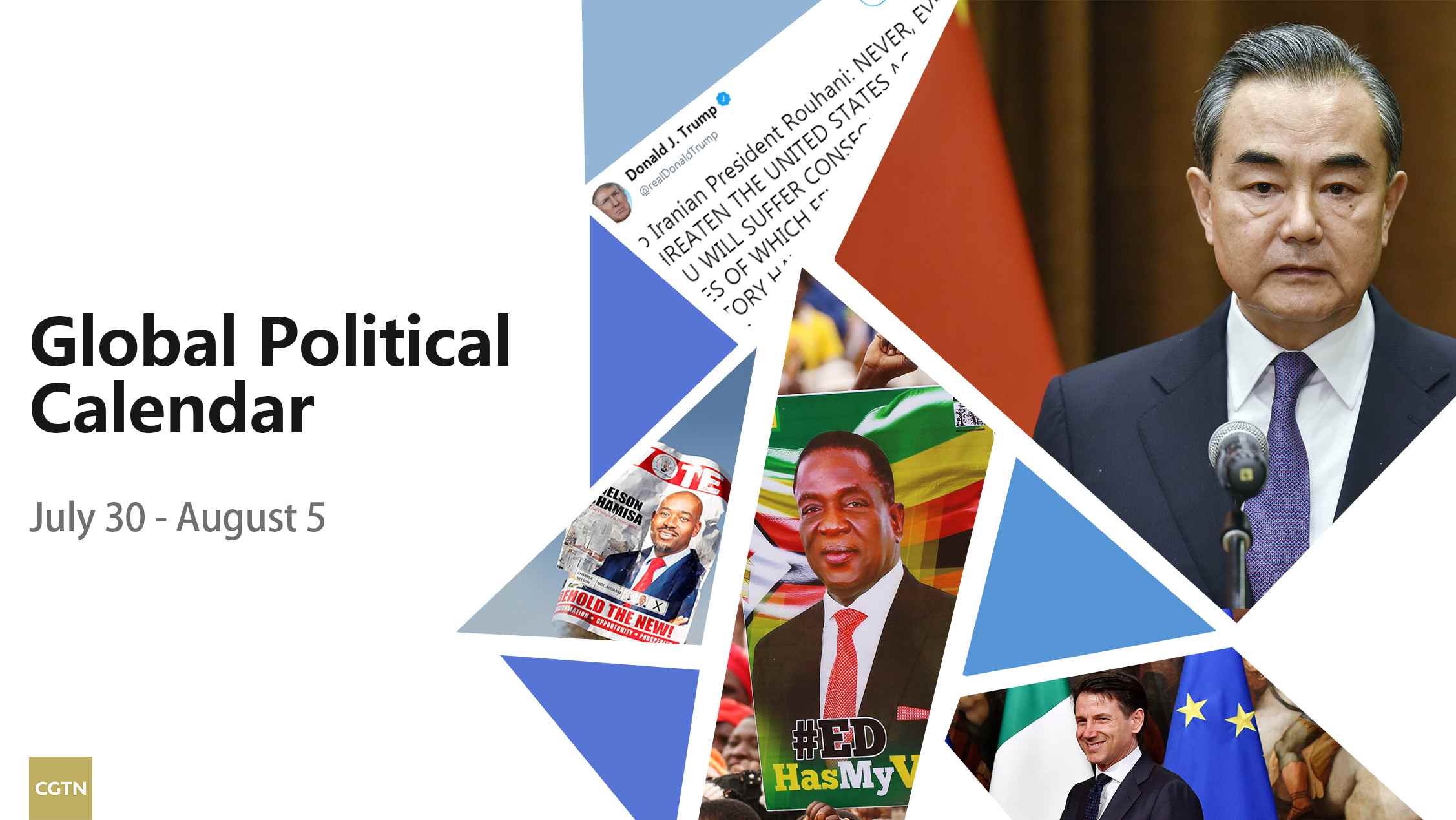 Chinese Foreign Minister Wang Yi hosts his British counterpart before flying to Malaysia and then Singapore for talks with ASEAN, Zimbabwe goes to the polls for the first time in the post-Mugabe era, the Italian prime minister heads to the White House, and US-Iran strains will be under the microscope.