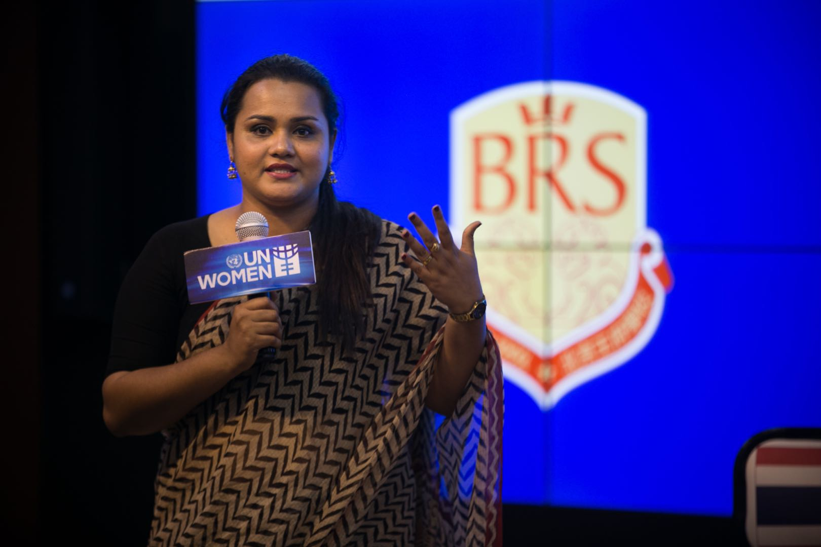 Jayathma Wickramanayake at a gender and peer education dialogue hosted by the UN Women China. /UN Women China Photo