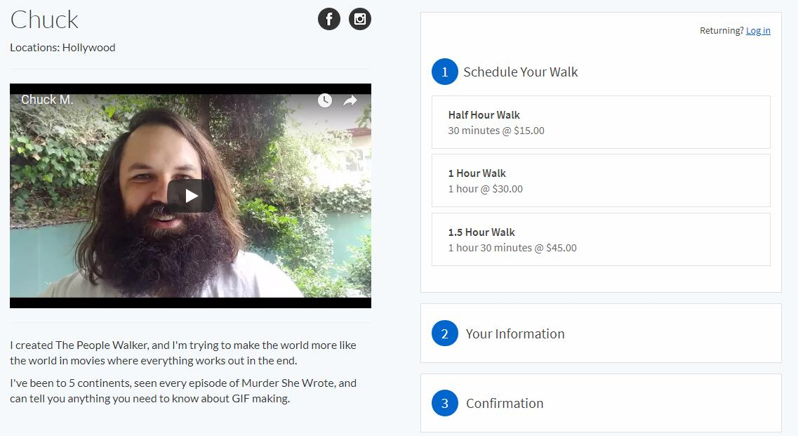 On the website, clients can read walkers’ bios and watch their self-introductory videos before picking their walking partners and scheduling a walk. The walkers have to pass a personality test, a background check and a "walk" interview before getting employed.