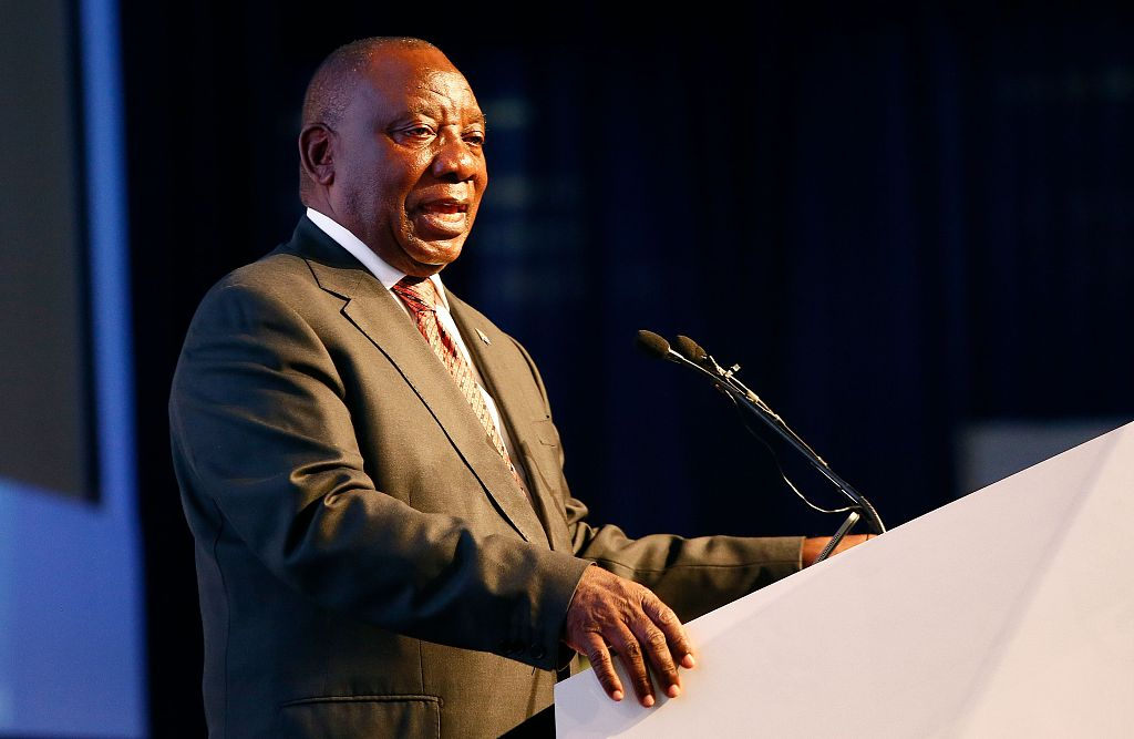South African President Cyril Ramaphosa speaks during the formal announcement of the National and Provincial Election Results at the Independent Electoral Commission (IEC) Results Operations Centre on May 11, 2019 in Pretoria, South Africa. /VCG Photo
