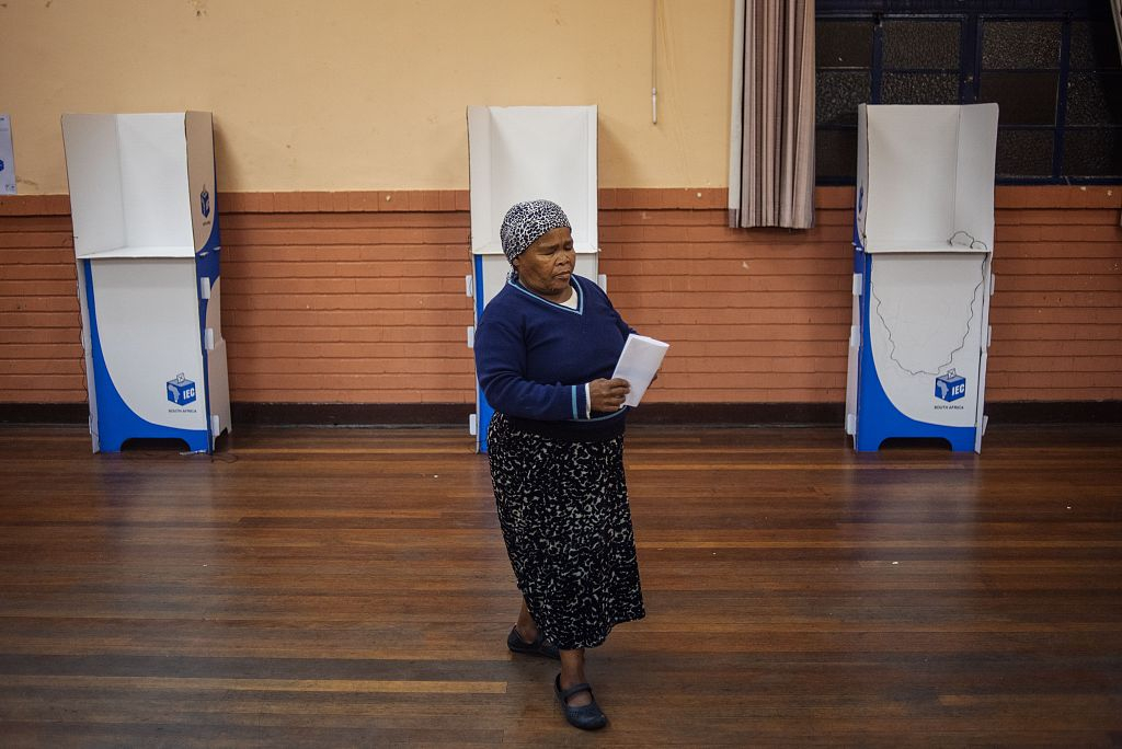 Angelina Moncho (65) walks to cast the last vote before the closure of the Brixton Recreational Centre voting station in Brixton, Johannesburg, as part of the vote for South African general elections on May 8, 2019. /VCG Photo