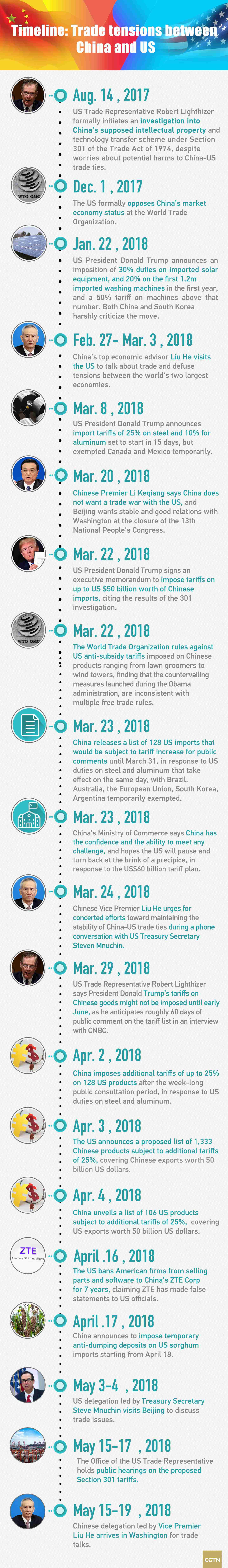 It is the third round of discussions between China and the US on the tariff proposal based on the Section 301 Investigation. The tariff threat is part of the US response to what it says are unfair Chinese intellectual property and technology transfer practices.