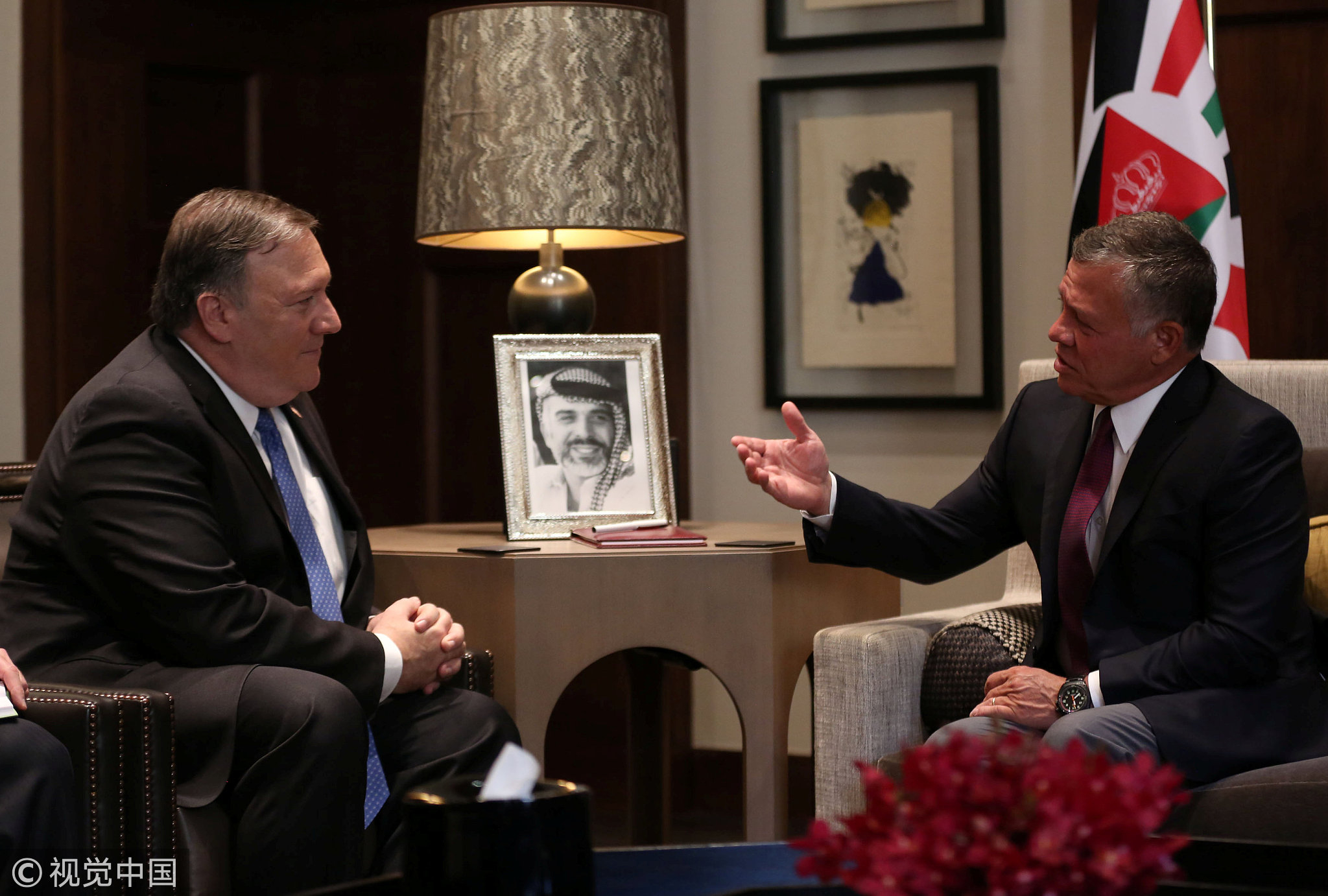 US Secretary of State Mike Pompeo meets with Jordan's King Abdullah II at the Royal Palace in Amman, Jordan, April 30, 2018. /VCG Photo
