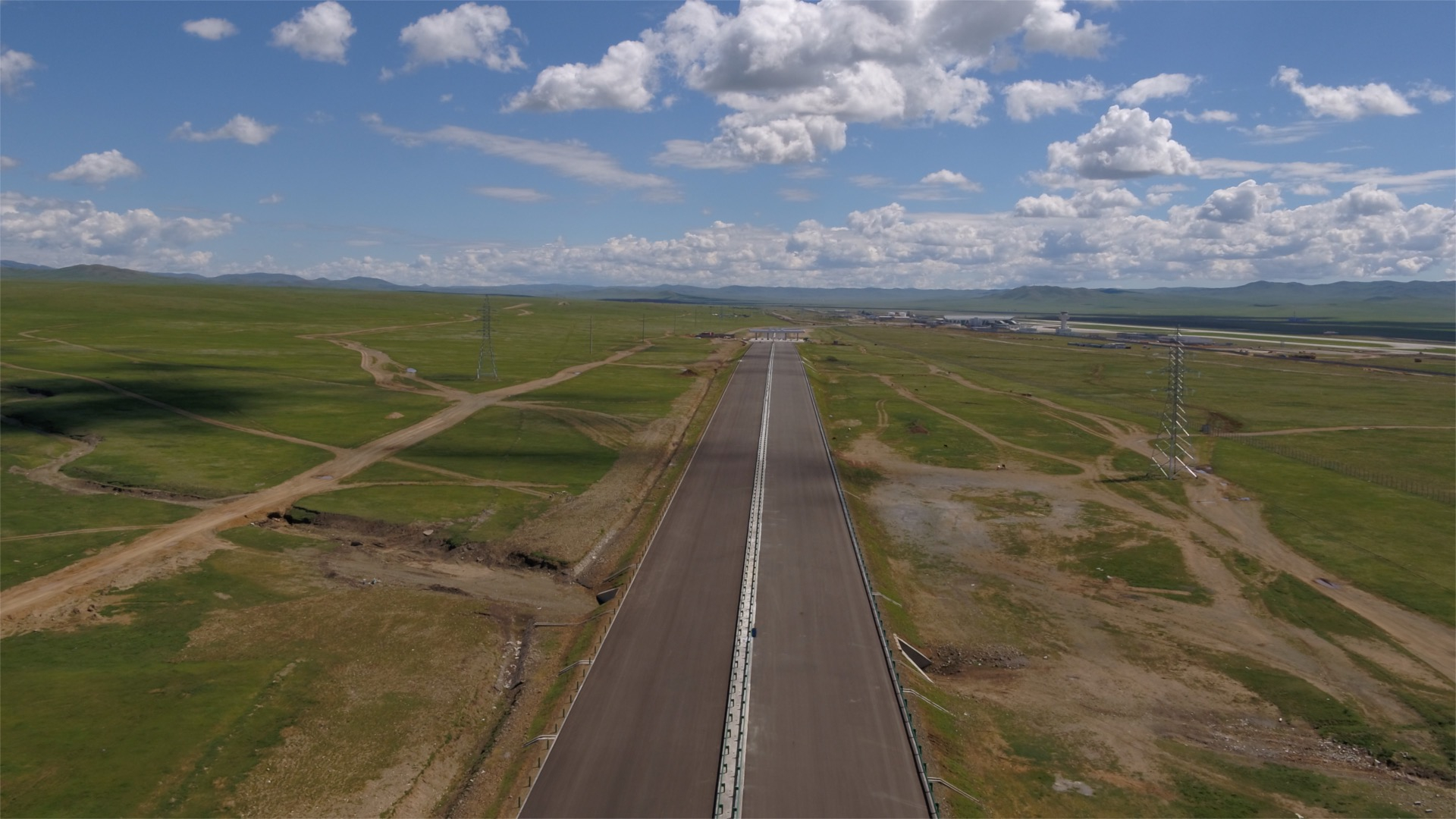 The asphalt pavement of the highway to the new airport in Ulaanbaatar has been completed. It has been built by CTCE Group (China Tiesiju Civil Engineering Group Co.,Ltd.) and is an important cooperation project under the framework of the Belt and Road Initiative between China and Mongolia. The road is 32.226 kilometers long and has a width of 32.5 meters. (Source: CTCE Group)