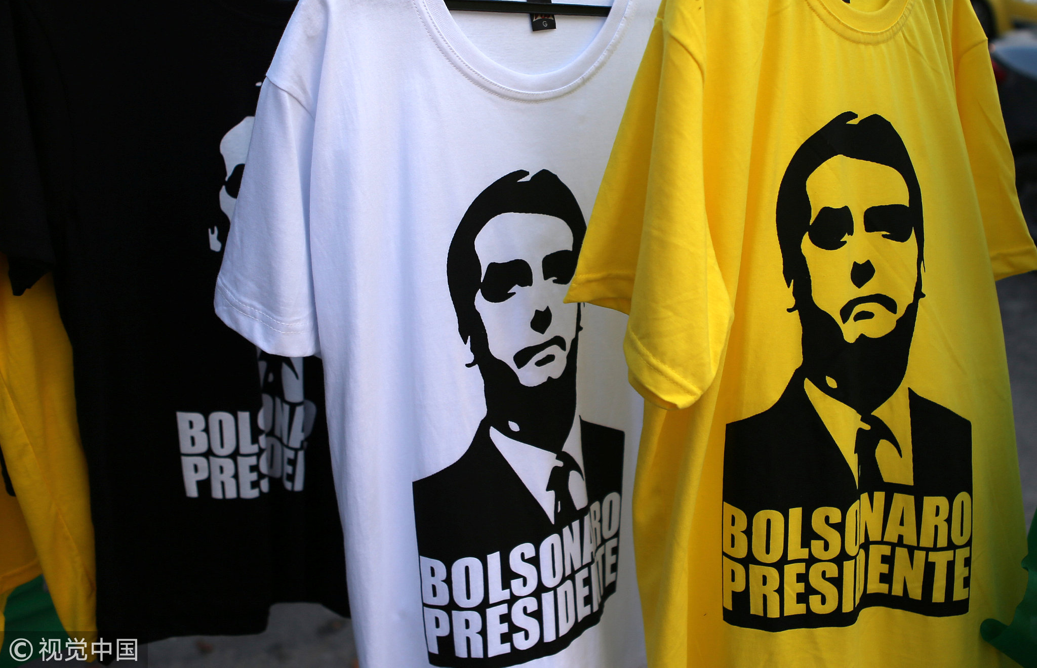 T-shirts emblazoned with Bolsonaro's image on sale in Rio de Janeiro, Brazil, October 9, 2018. /VCG Photo
