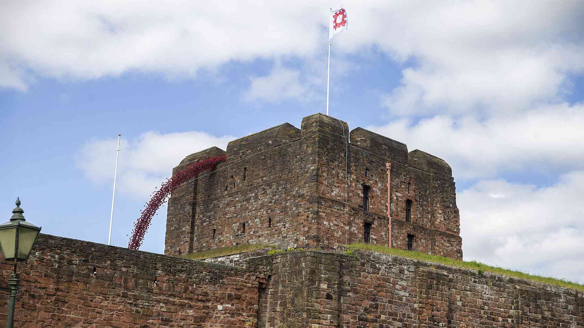 "Weeping Window," an iconic poppy sculpture created by artist Paul Cummins and designer Tom Piper, opened at Carlisle Castle in the UK on May 23. /VCG Photo