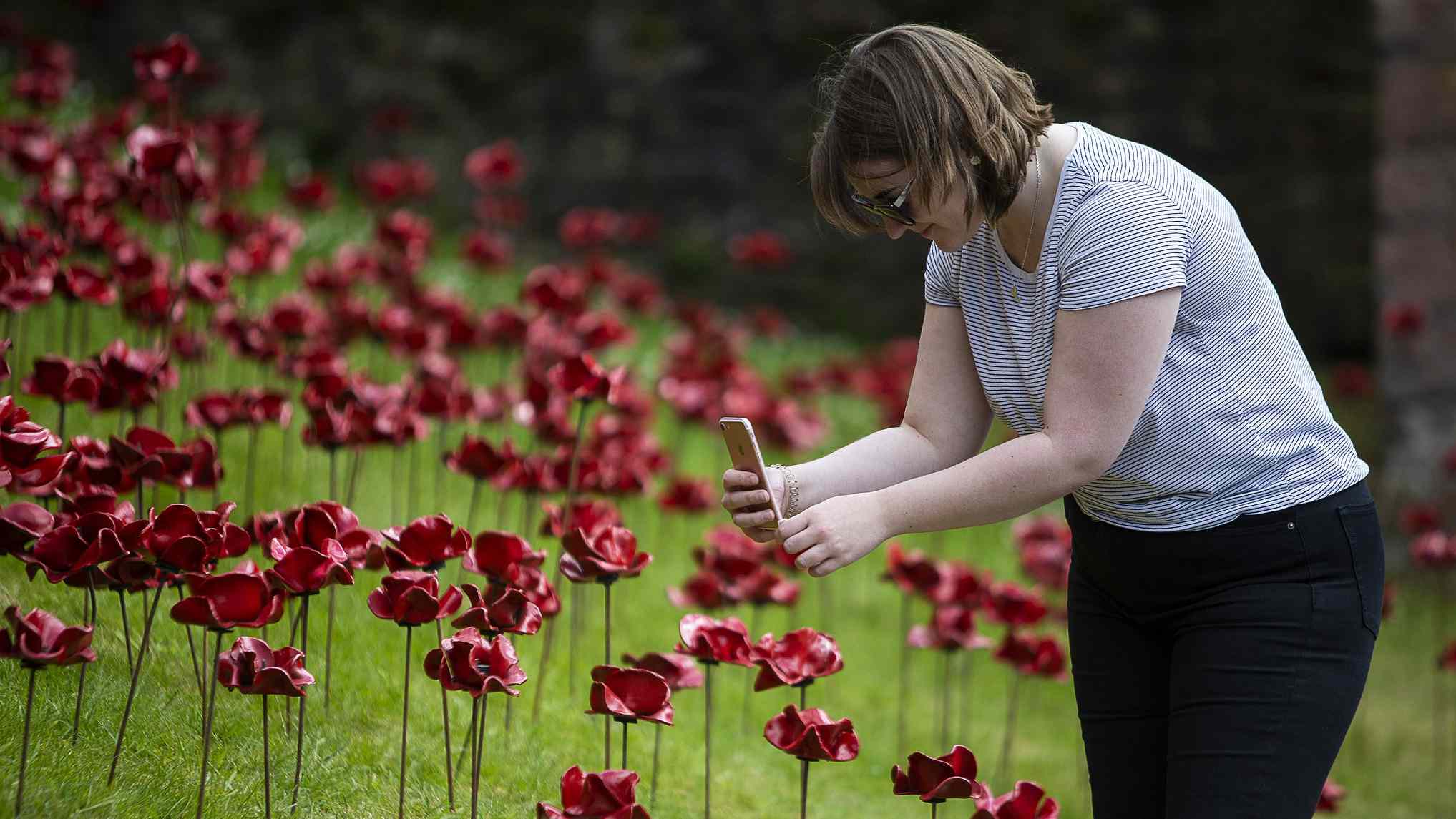 Made of 6,000 terra-cotta poppies with metal stems, the display was designed to give visitors the impression of liquid flowing – recalling the blood that was shed during the war. /VCG Photo