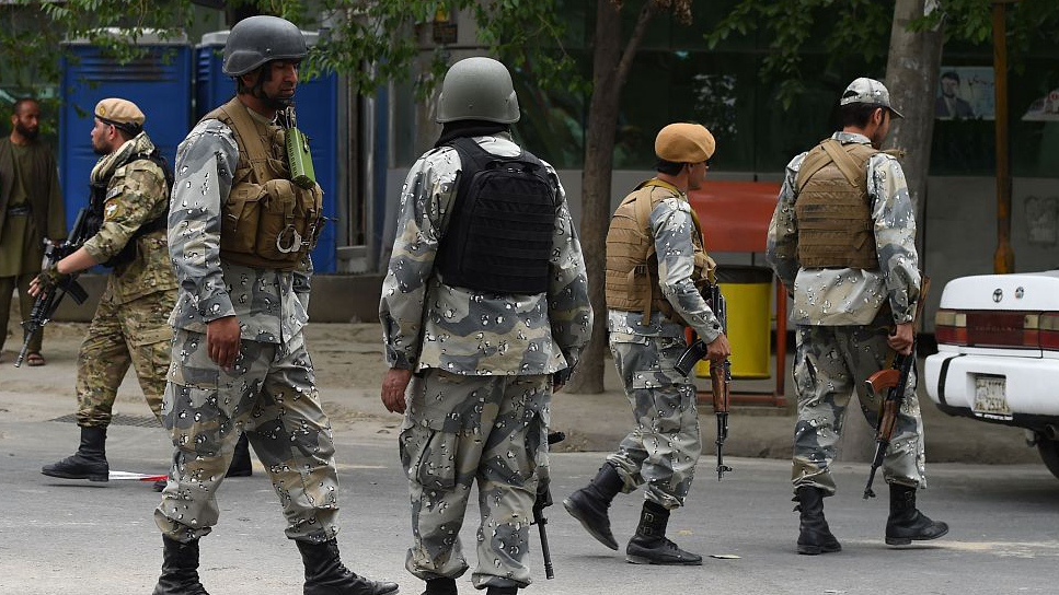 (Top image: Afghan security personnel block the street after an explosion hit Kabul on May 8, 2019. / VCG photo)