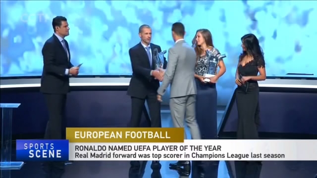 Ronaldo has now won Player of the Year three times, one more than Messi who was part of the shortlist chosen by a panel of 80 coaches of clubs that made it to the Champions League and Europa League, along with 55 journalists selected by the European Sports Media group, representing each of UEFA's member associations. Barcelona winger Lieke Martens was named UEFA women's Player of the Year. Juventus' Buffon picked up the best goalkeeper award for helping his side win a sixth straight Serie A title and to the final of the Champions League last season. Other individual honors went to Real players with Sergio Ramos taking best defender, Luka Modric best midfielder, and Ronaldo best striker.