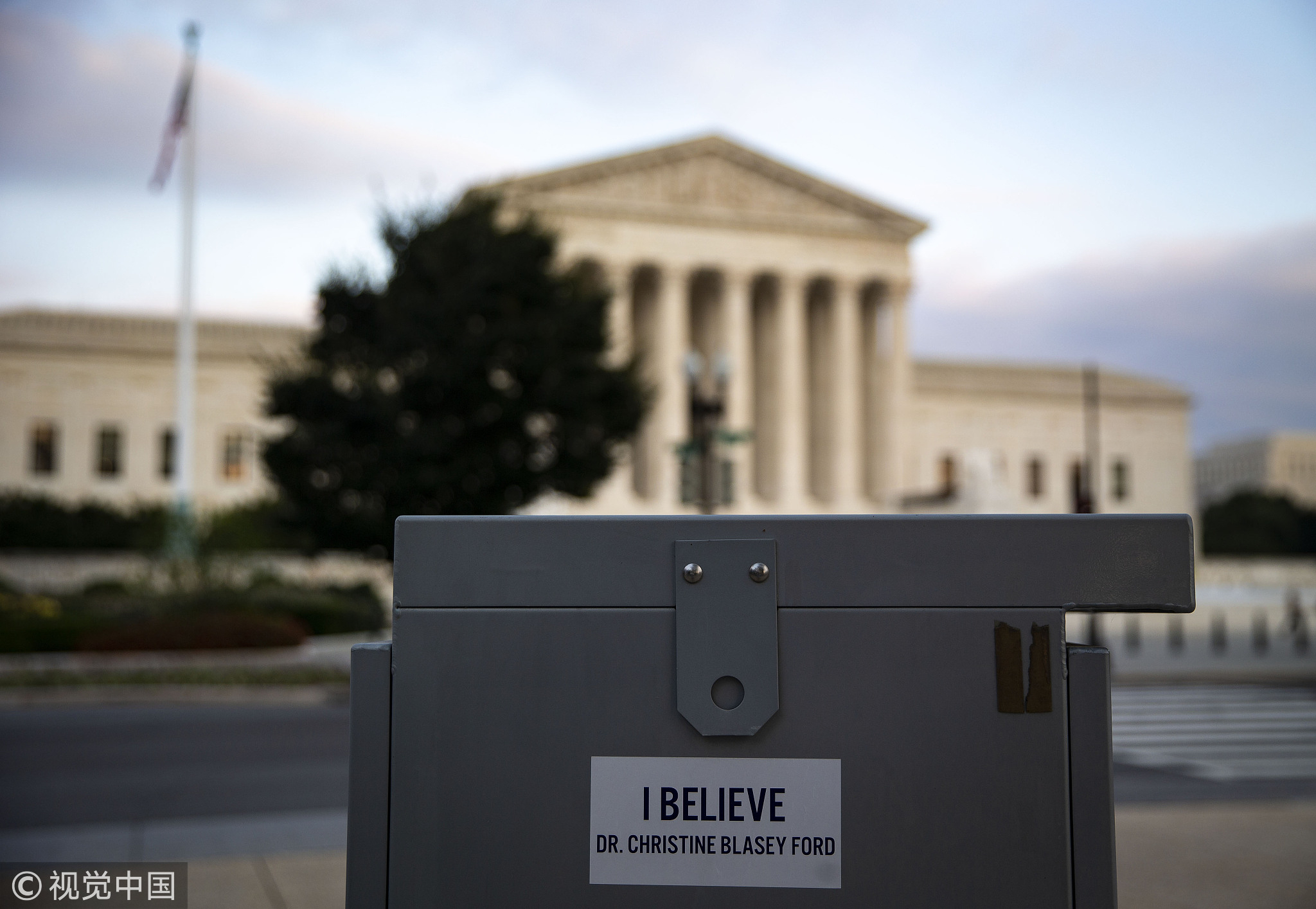 A sticker in support of Christine Blasey Ford is seen outside of the US Supreme Court building in Washington, DC, September 21, 2018. /VCG Photo