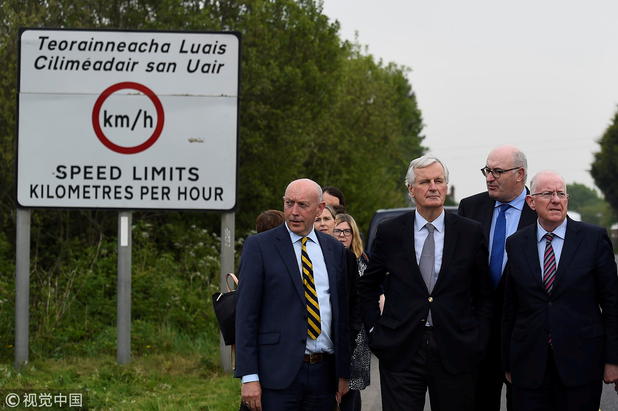 May 12, 2017: European Union chief negotiator for Brexit Michel Barnier accompanied by a delegation of Irish ministers visits the Armagh and County Louth border between Northern Ireland and Ireland. /VCG Photo