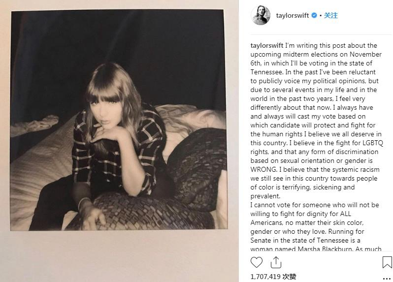 The “Speak Now” singer said in her Instagram post she was a supporter of gay rights and women's rights, and against racism.