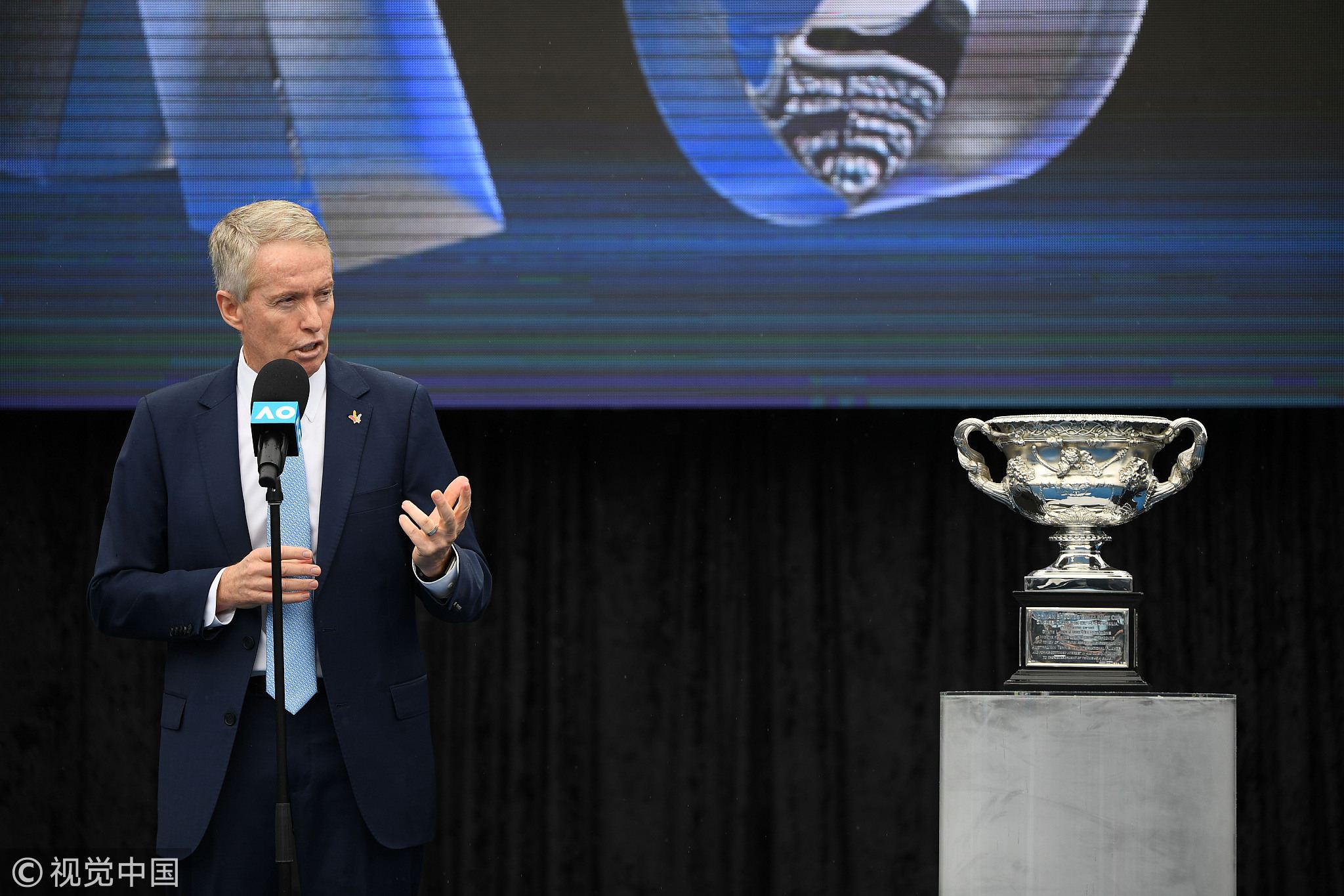 Craig Tiley talks to the media during the 2019 Australian Open Official Launch at Melbourne Park in Melbourne, Australia, October 9, 2018. /VCG Photo