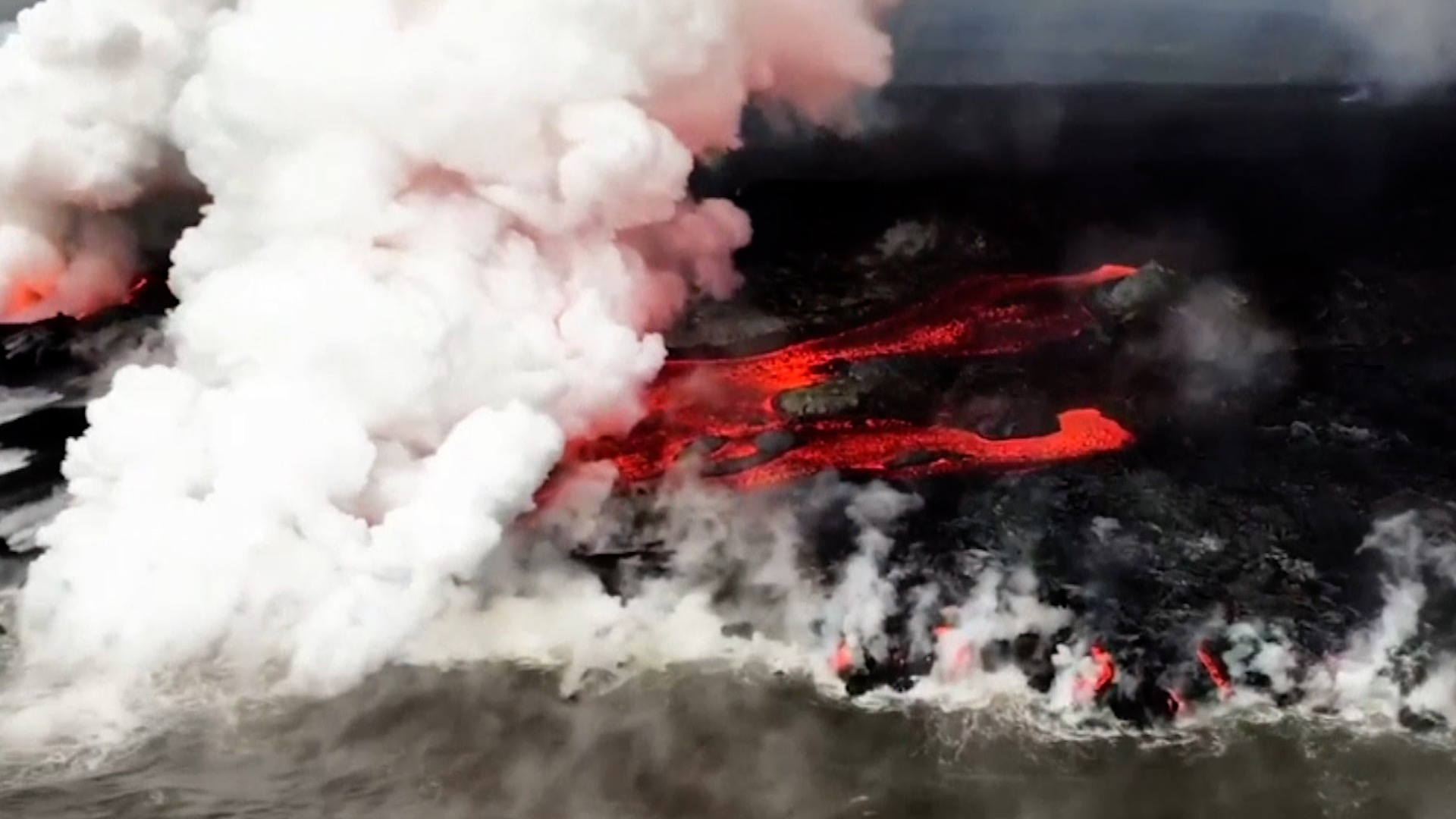 Hawaii's Kilauea volcano has been pouring lava into the ocean for weeks and gas emissions from the main fissure eruption and at the ocean entry continue to be very high. The eruption is now in its 42nd day, with some fissures spewing lava up to 160 feet (50 meters) high. Lava from the Kilauea volcano has destroyed more than 600 homes since early May.