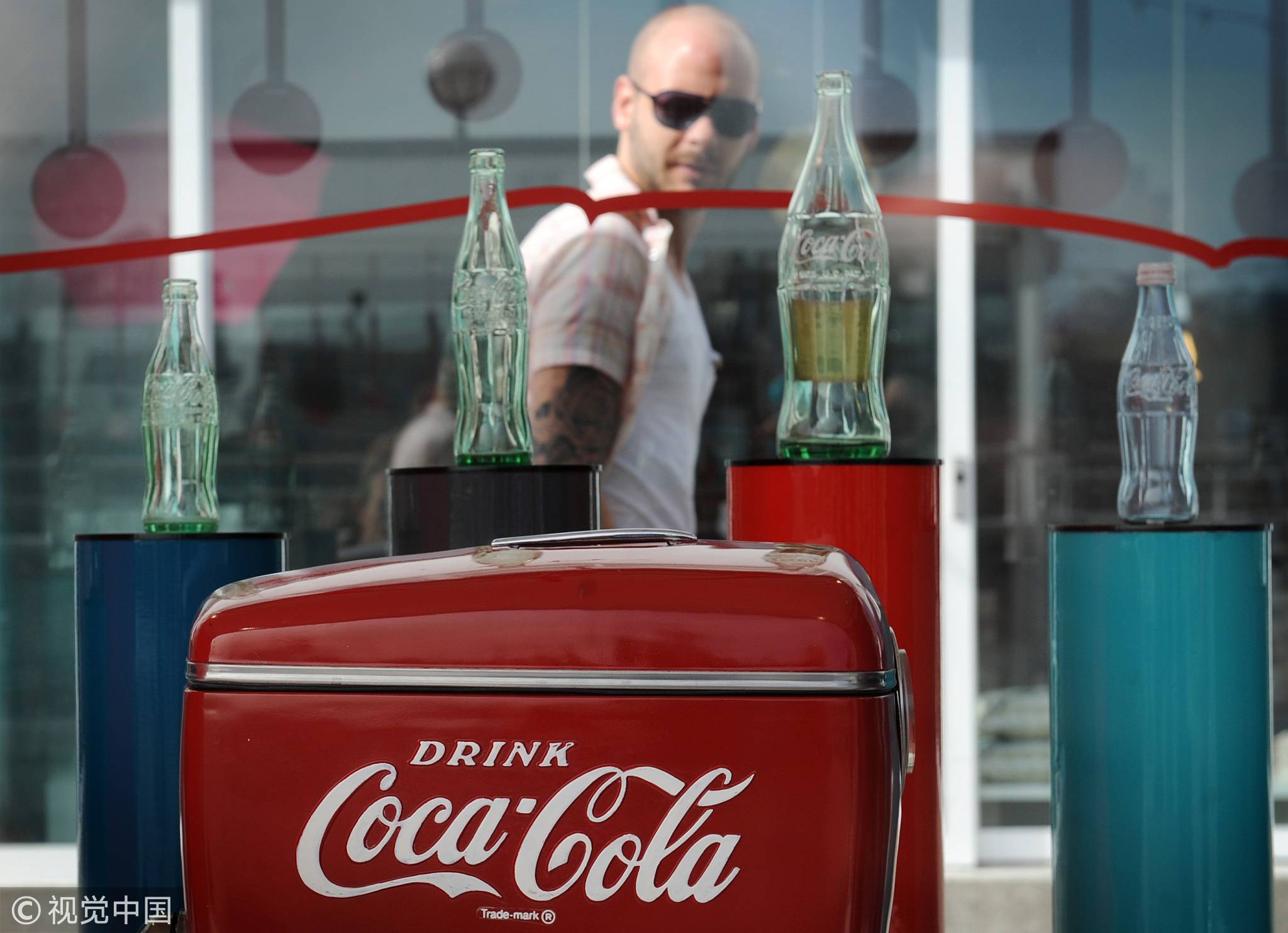 Empty glass bottles of Coca-Cola on display. /VCG Photo