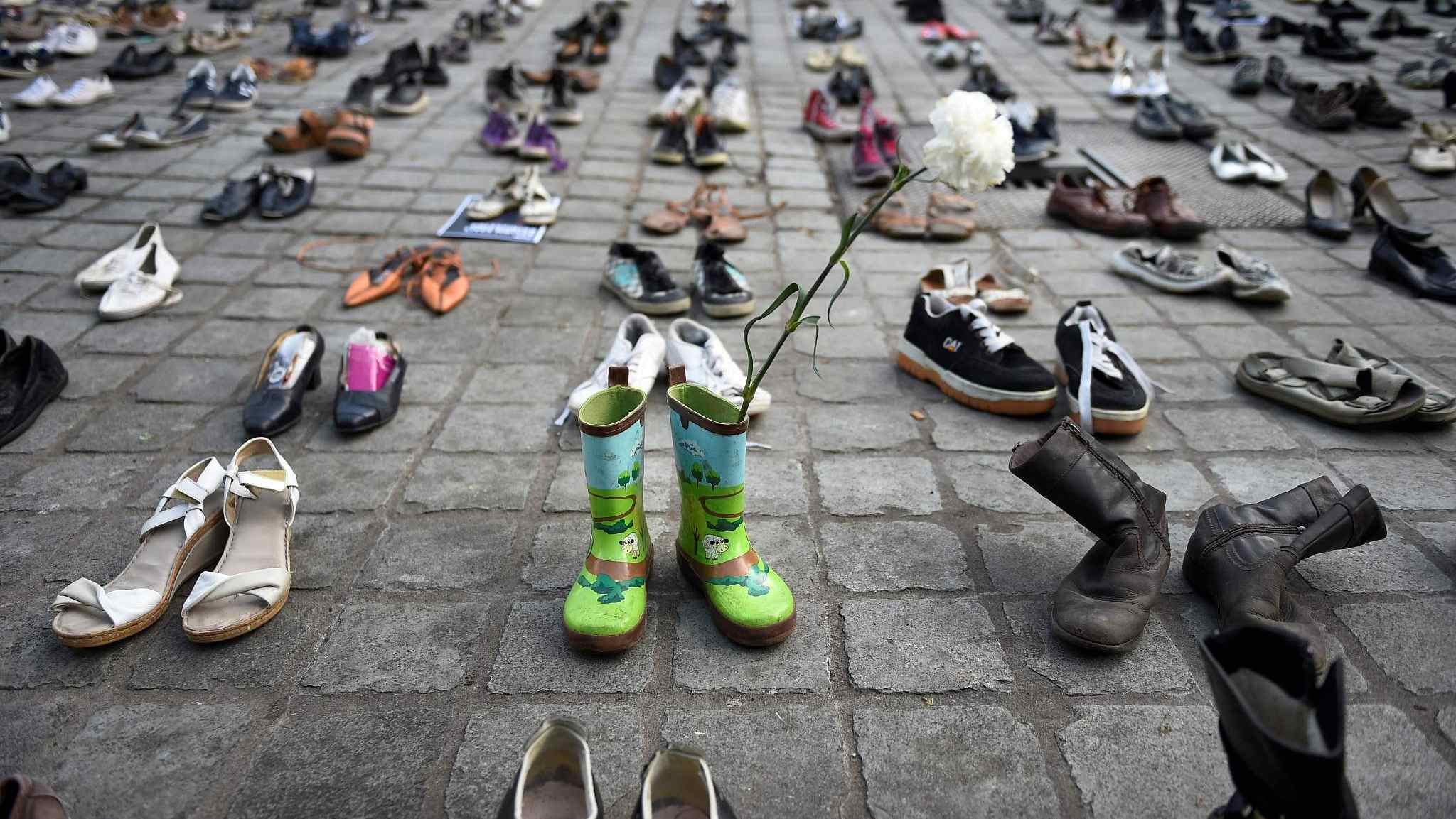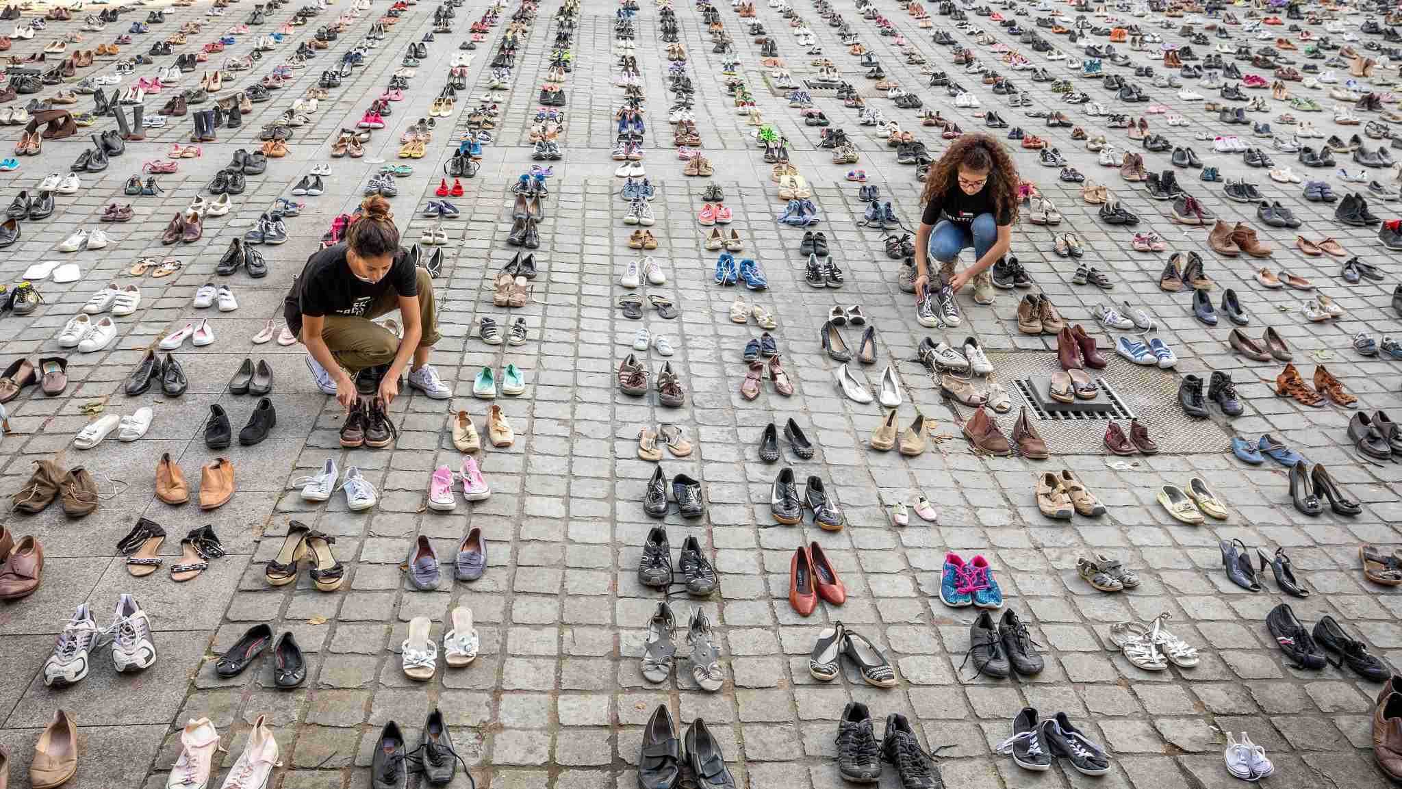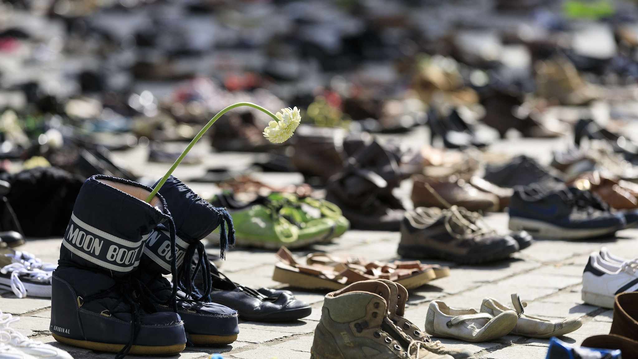 Each pair of shoes symbolizes a life lost in the regional conflict over the past decade. /VCG Photo