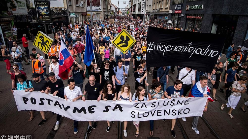 A protest rally in reaction to the murder of Slovak investigative reporter Jan Kuciak and his fiancee Martina Kusnirova, in Bratislava, Slovakia, March 16, 2018. /Reuters Photo